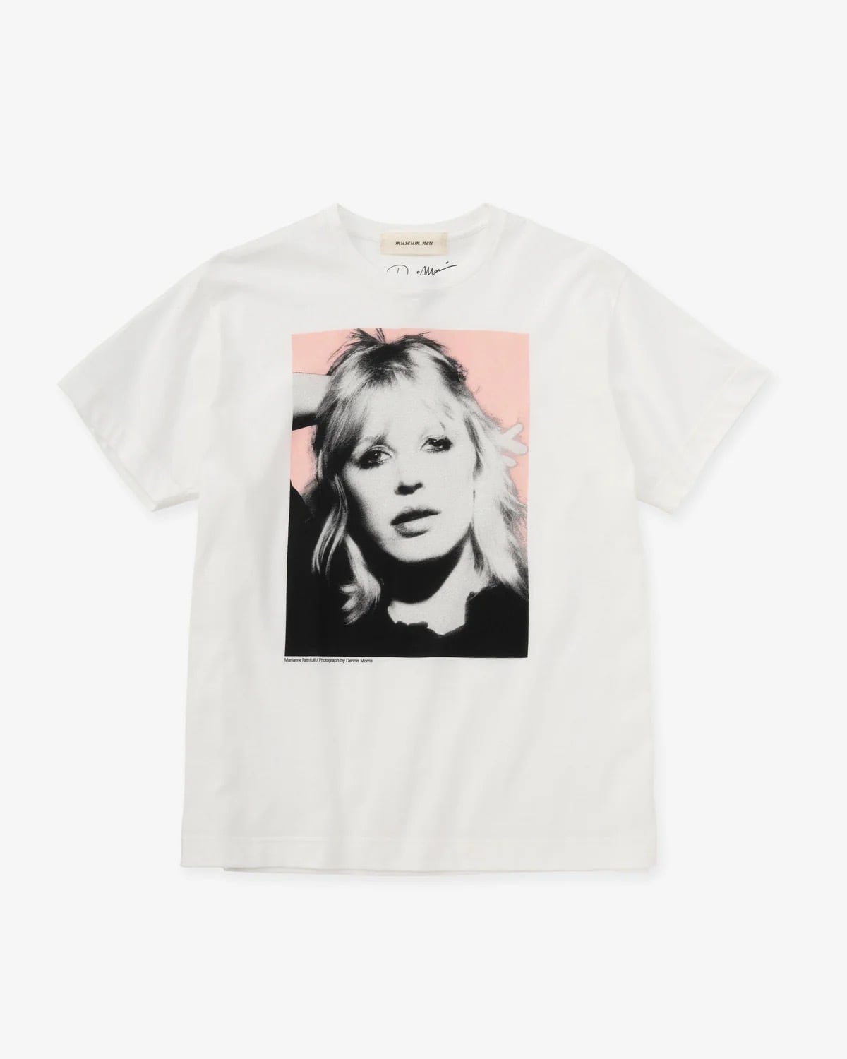 Dennis Morrisの「Marianne Faithfull」は、60年代を象徴するミューズであり歌手の彼女を捉えたポートレート。憂いを帯びた表情と静謐な空気感が、波乱に満ちた人生と内面の強さを物語る一枚です。