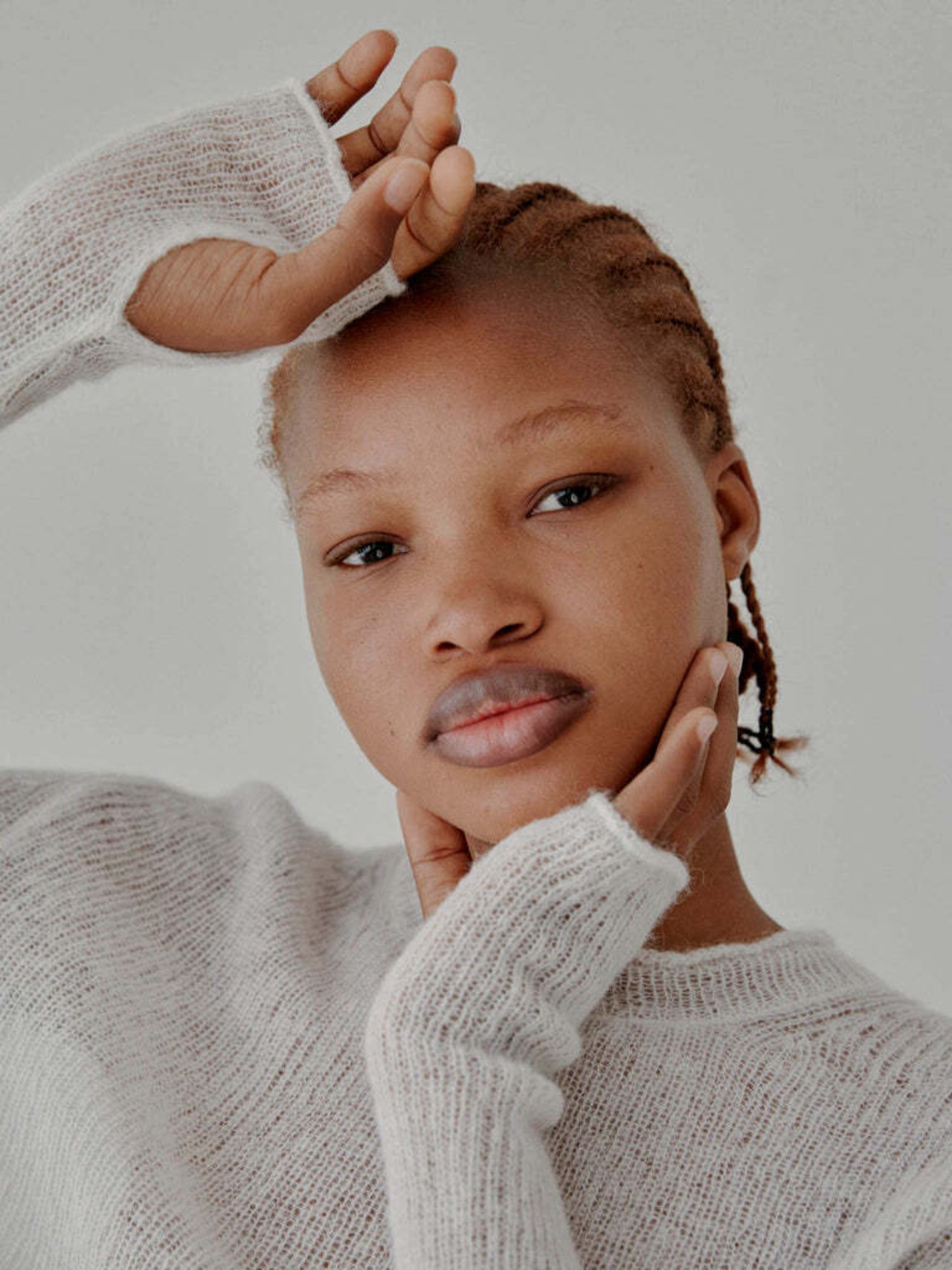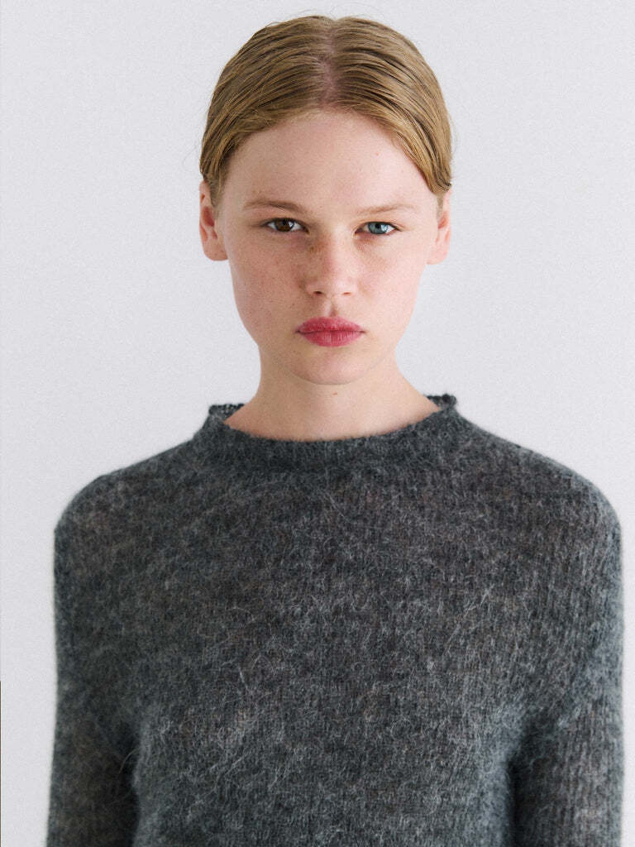 柔らかくふんわりとしたベビーアルパカ混素材を使用した、上質な細リブニット。