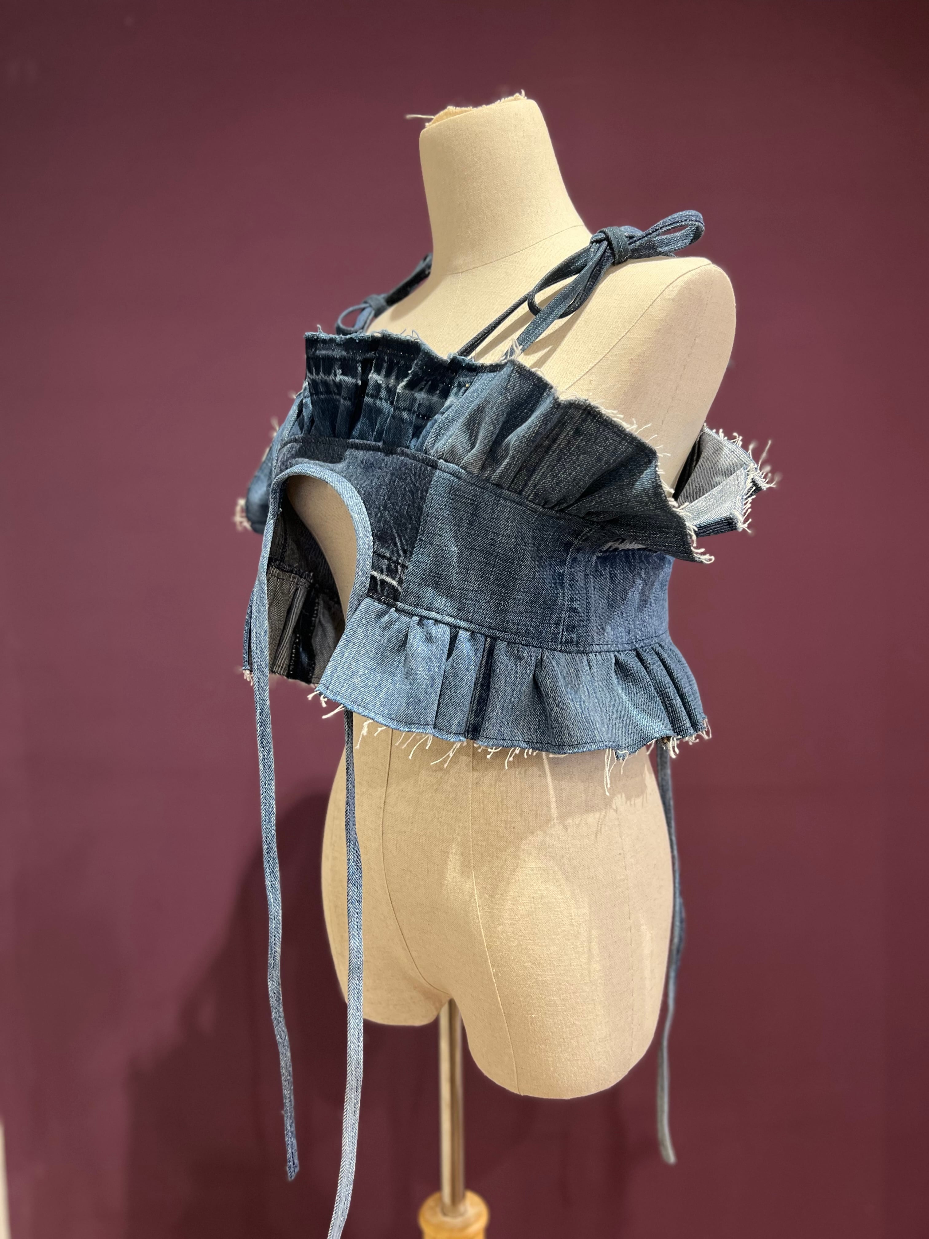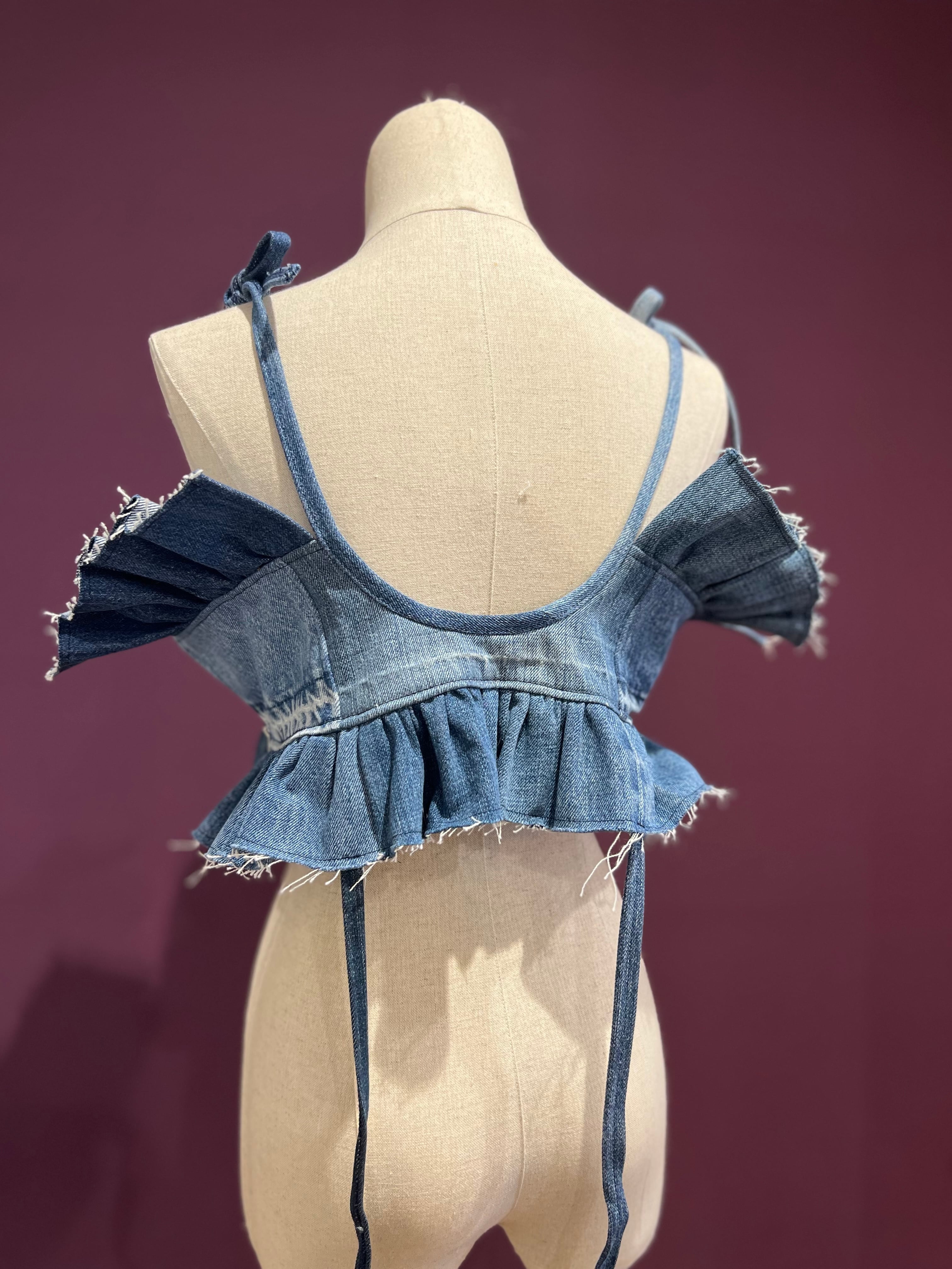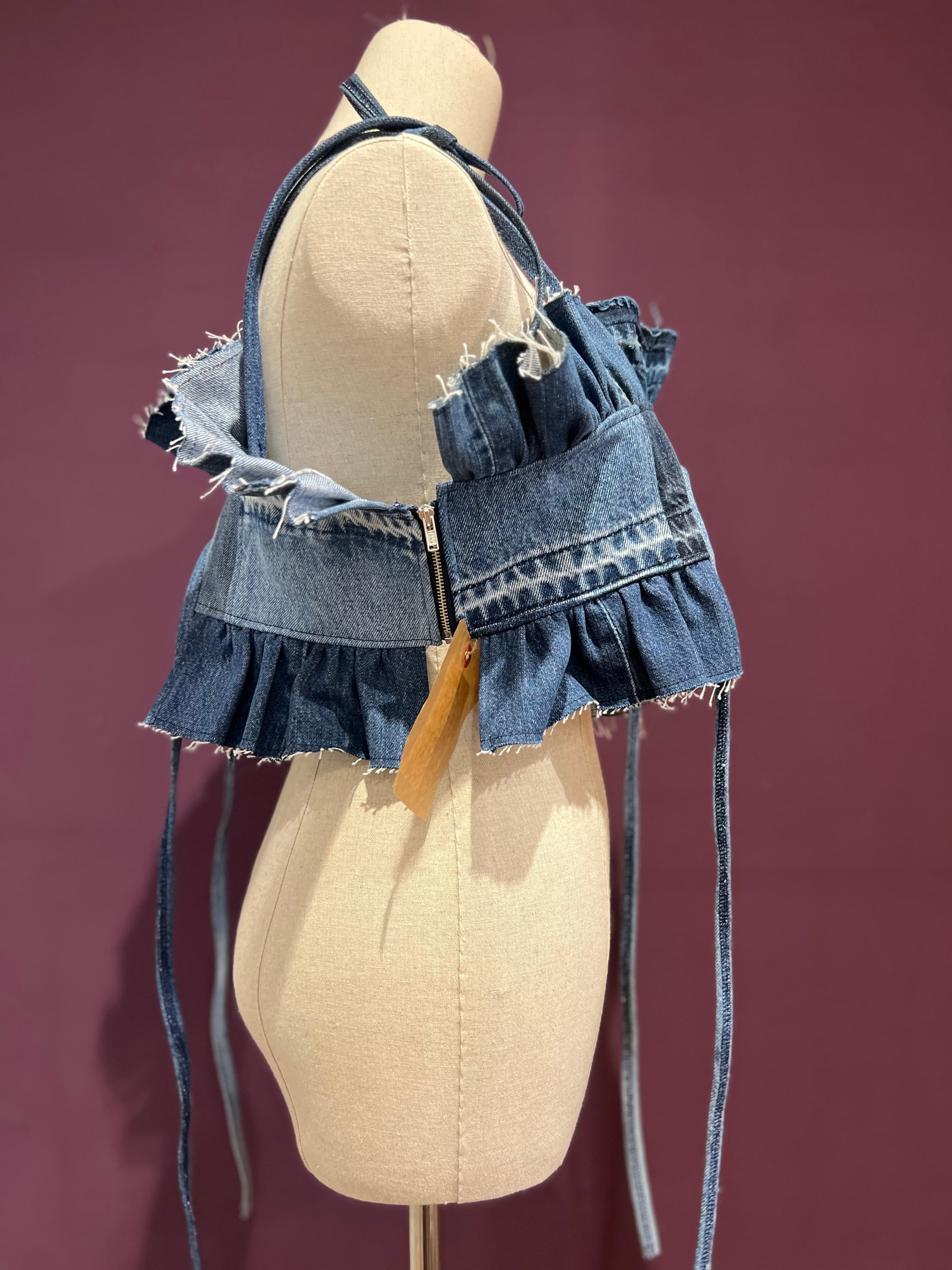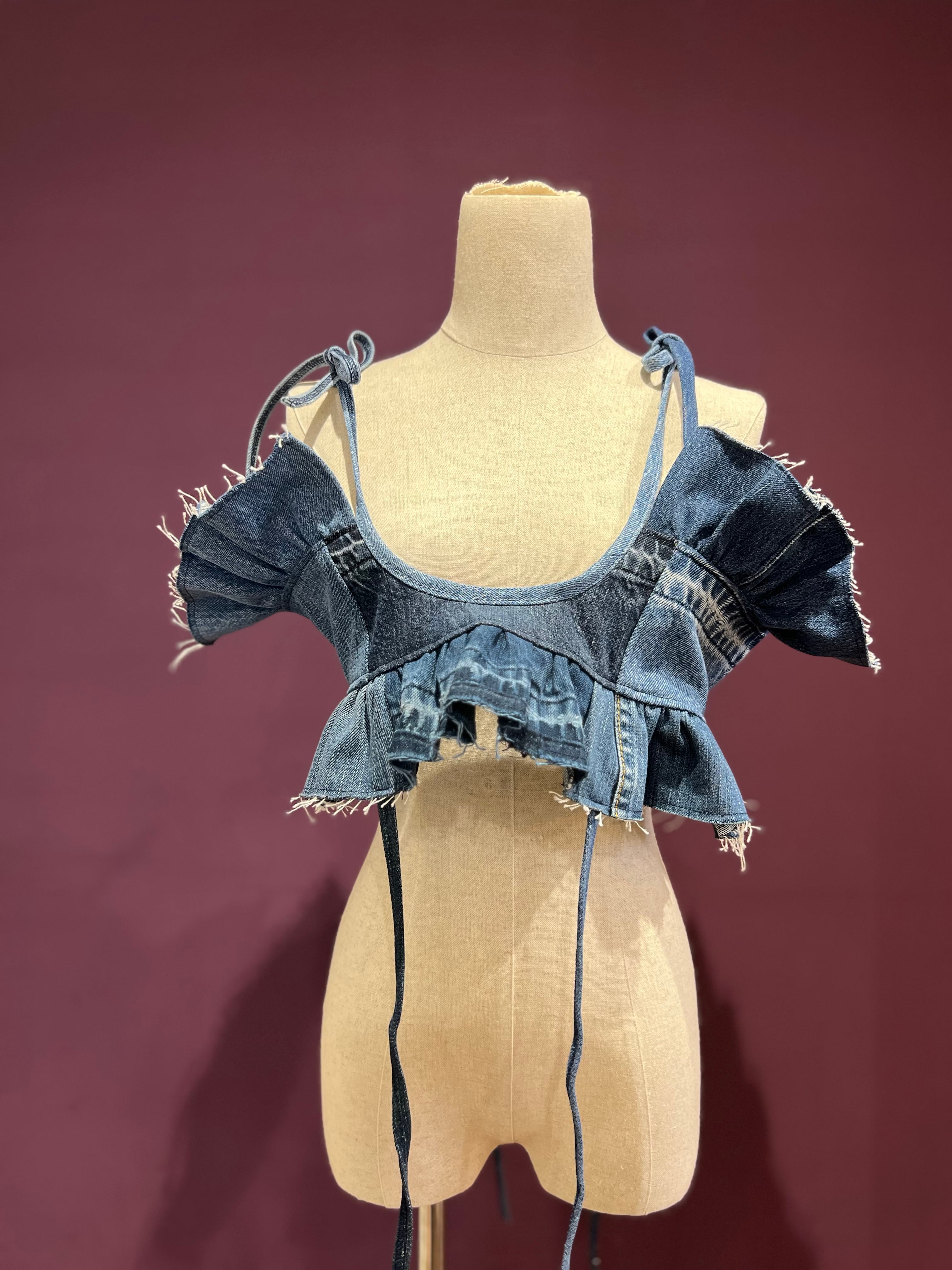 ユーズドデニムを使用した4way仕様のキャミソールです。