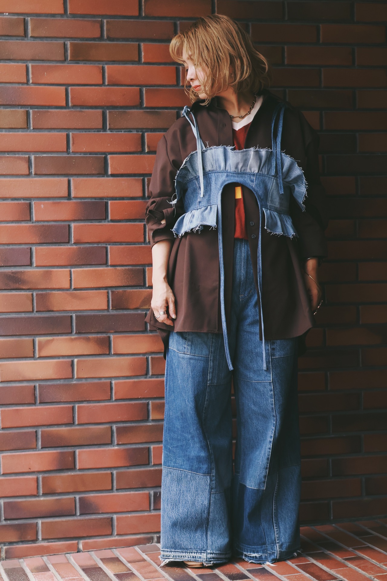 ユーズドデニムを使用した4way仕様のキャミソールです。