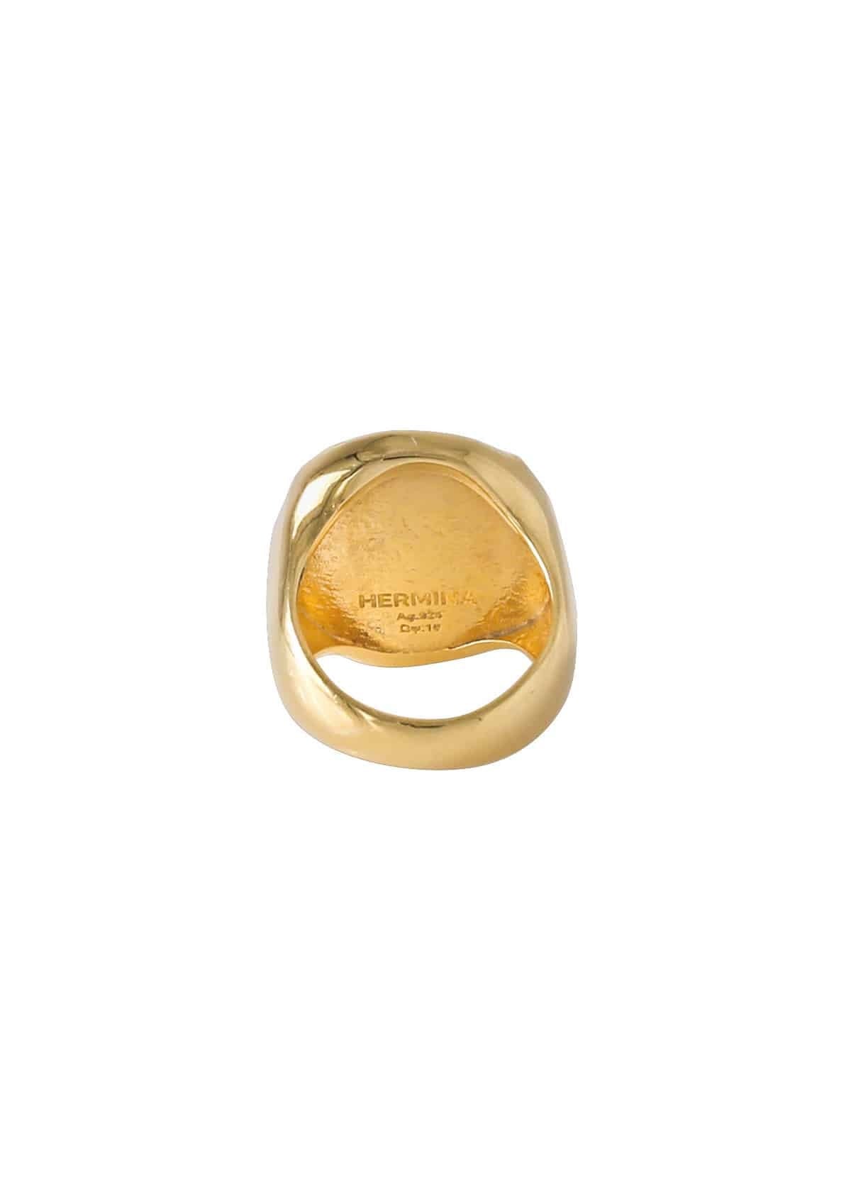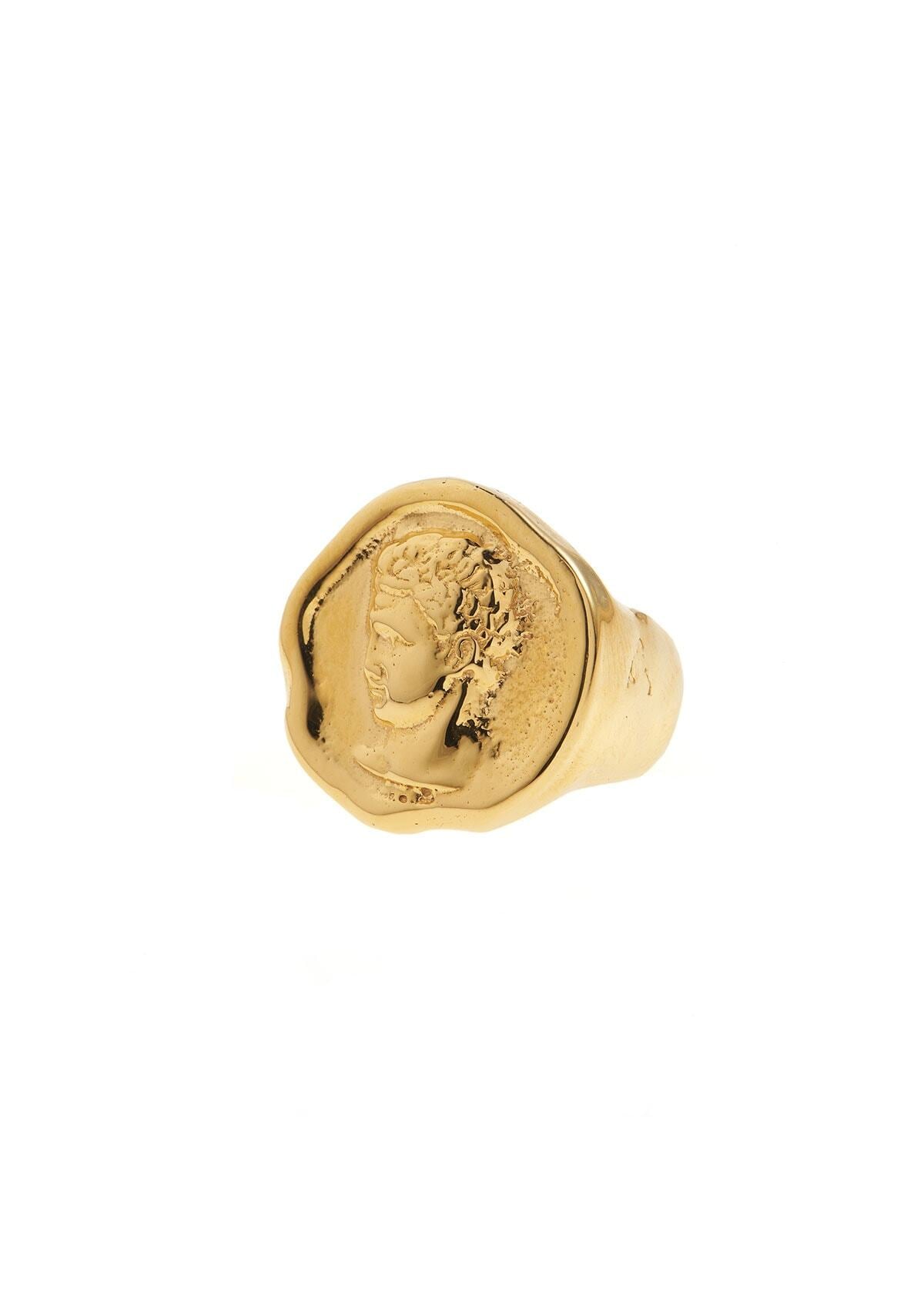 ギリシャ神話の神・ヘルメス(ゼウスとマイアの息子)の横顔をモチーフにした、存在感のあるシグネットリング。