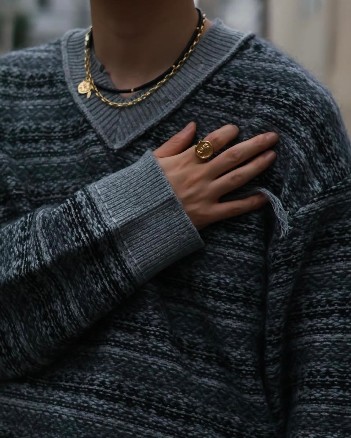 上質なシルバー素材に繊細なゴールドコーティングを施し、上品な輝きを放つ仕上がりです。重厚感がありながらも、日常にも馴染む洗練された存在感が魅力です。