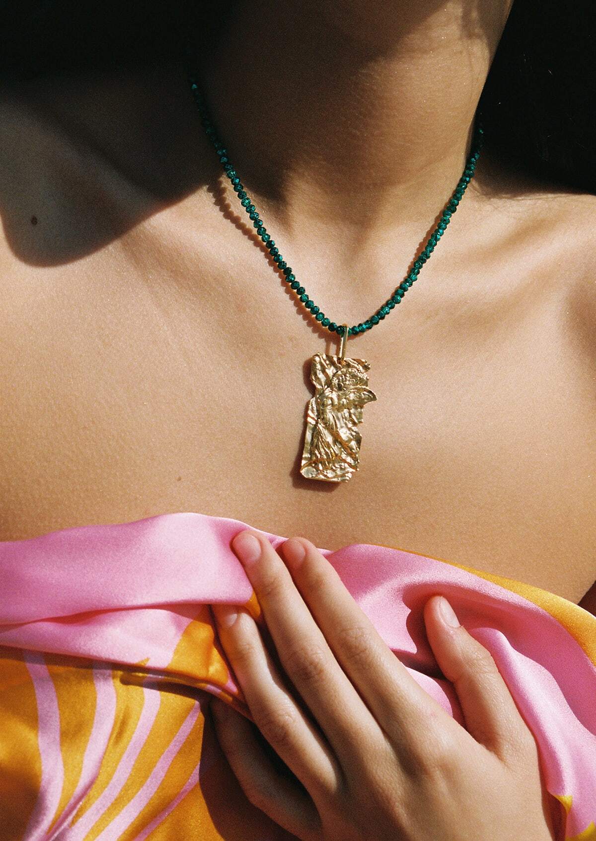 お気に入りのチェーンやパールネックレスに合わせて、力強さと優美さを感じるお守りのようなアクセサリーとしてお楽しみいただけます。