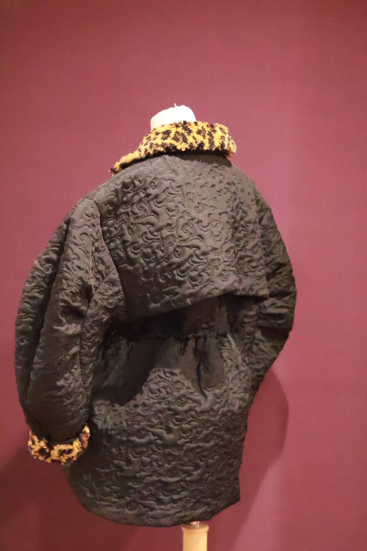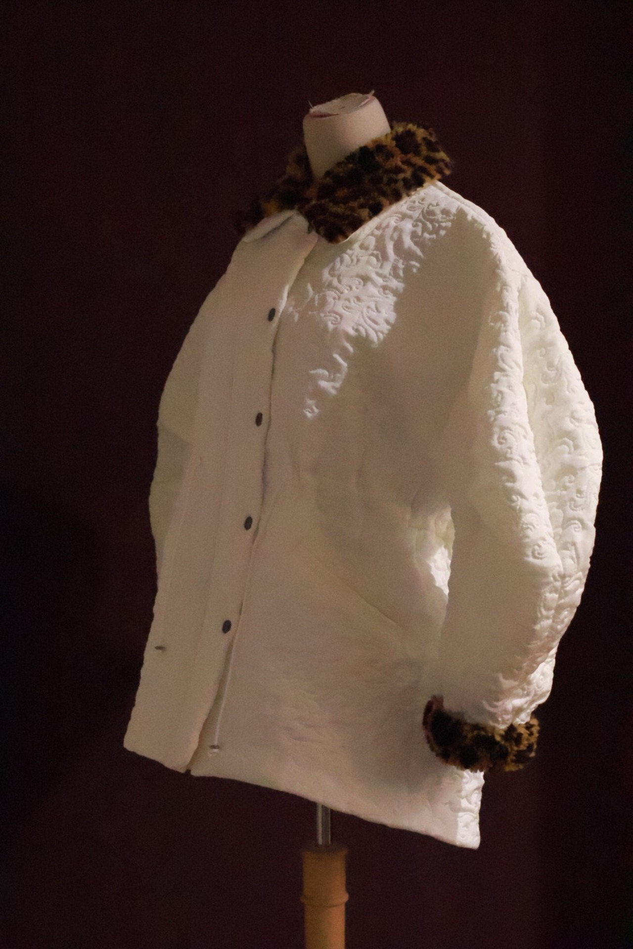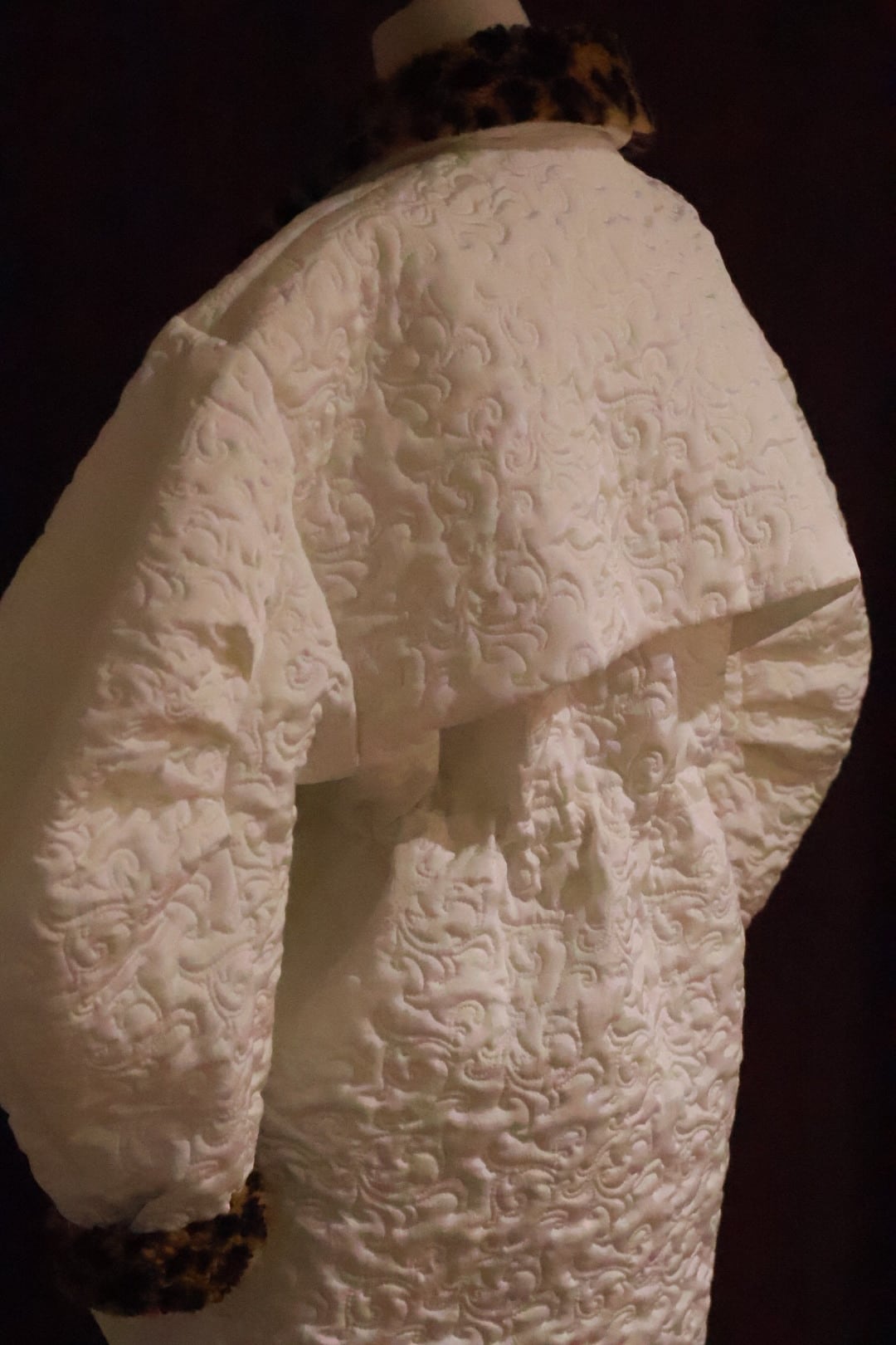 レオパードボアの襟は取り外し可能で、シーンに合わせて雰囲気を変えられます。