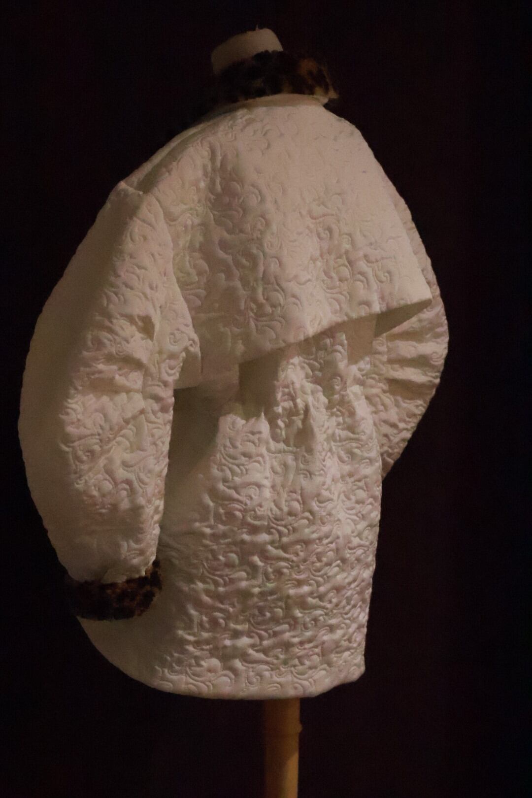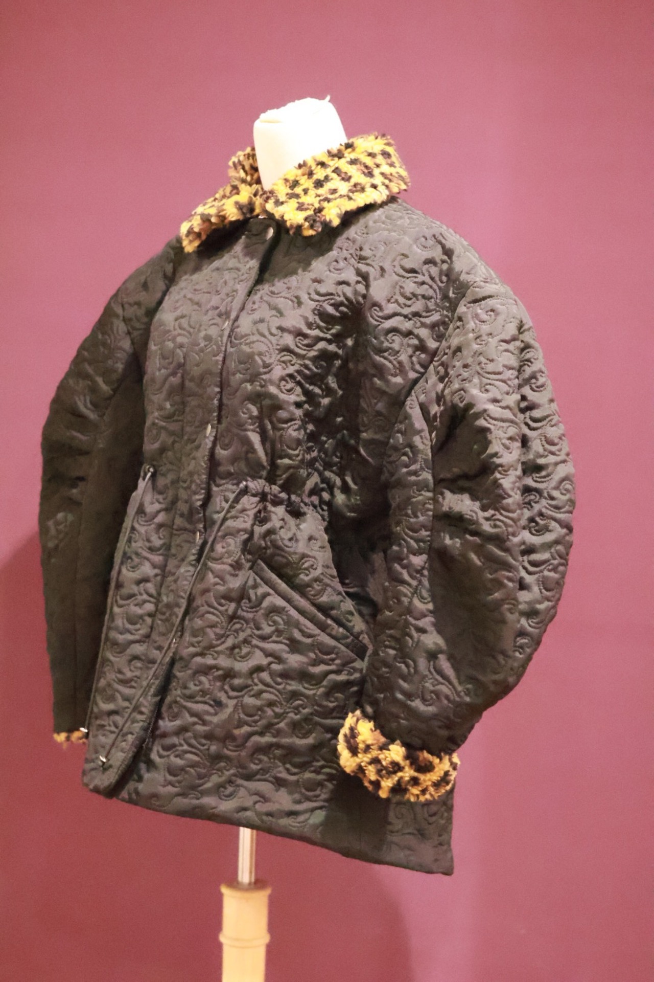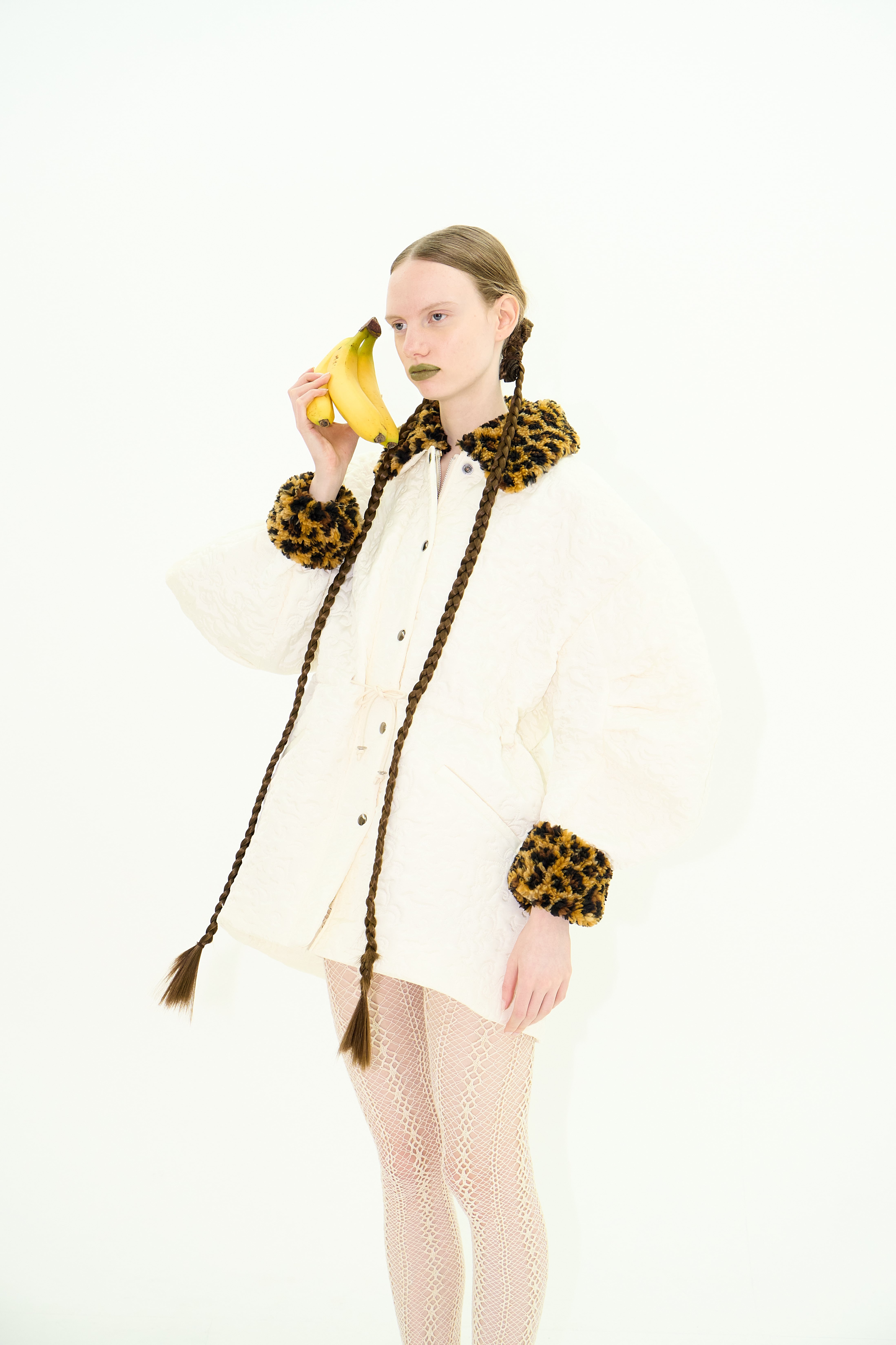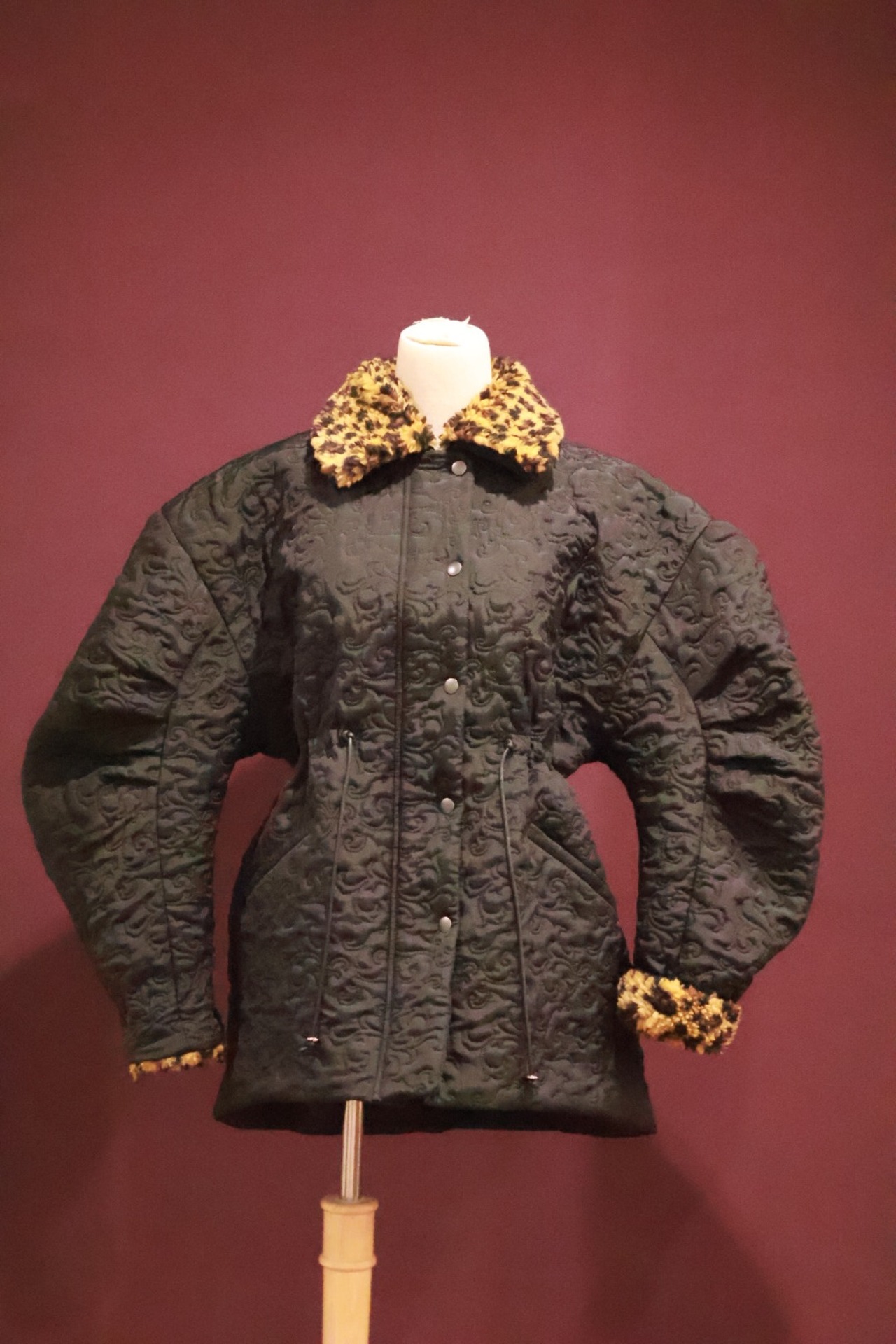 レオパードボアの襟は取り外し可能で、シーンに合わせて雰囲気を変えられます。
