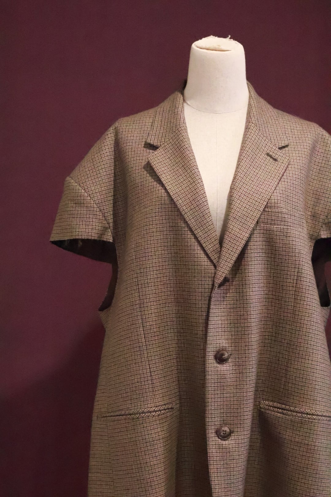 オーバーサイズなウール・チェスターコートの袖を大胆にクロップドしたベストです。