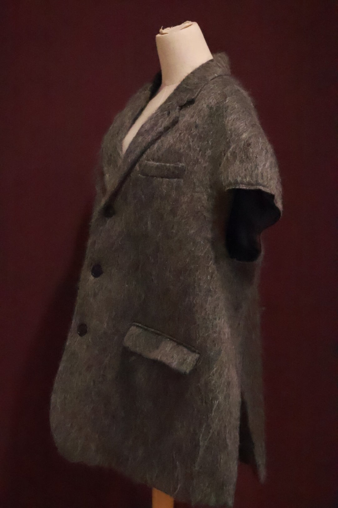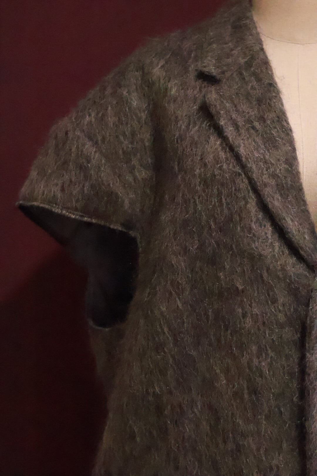ウール・チェスターコートの袖を大胆にクロップドしたモヘアシャギーベストです。