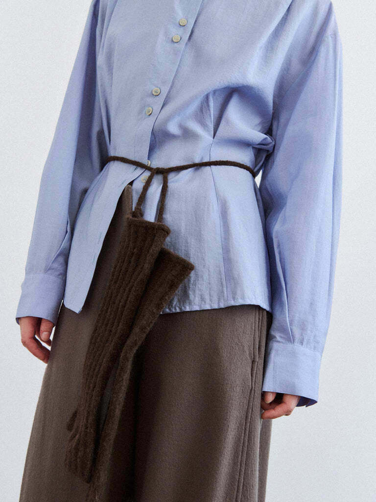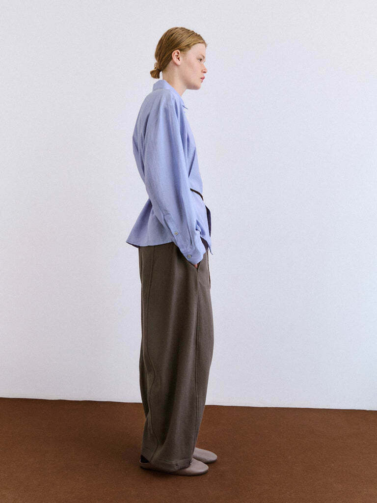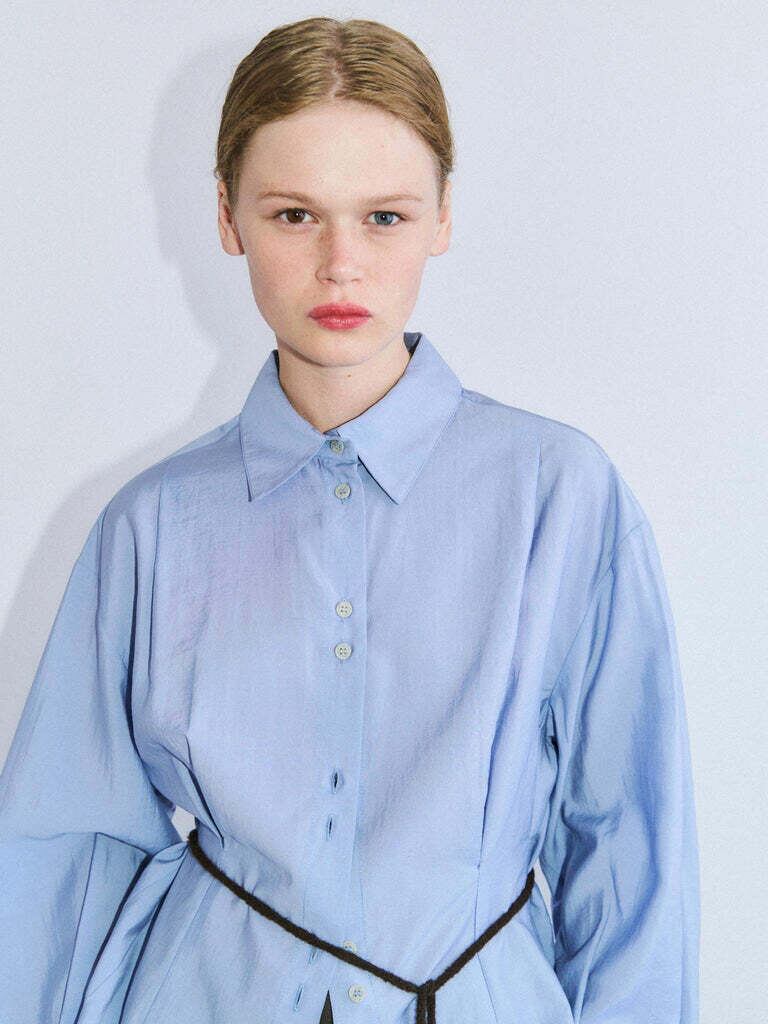 やわらかくて落ち感のある生地を使った、立体シルエットのシャツ。