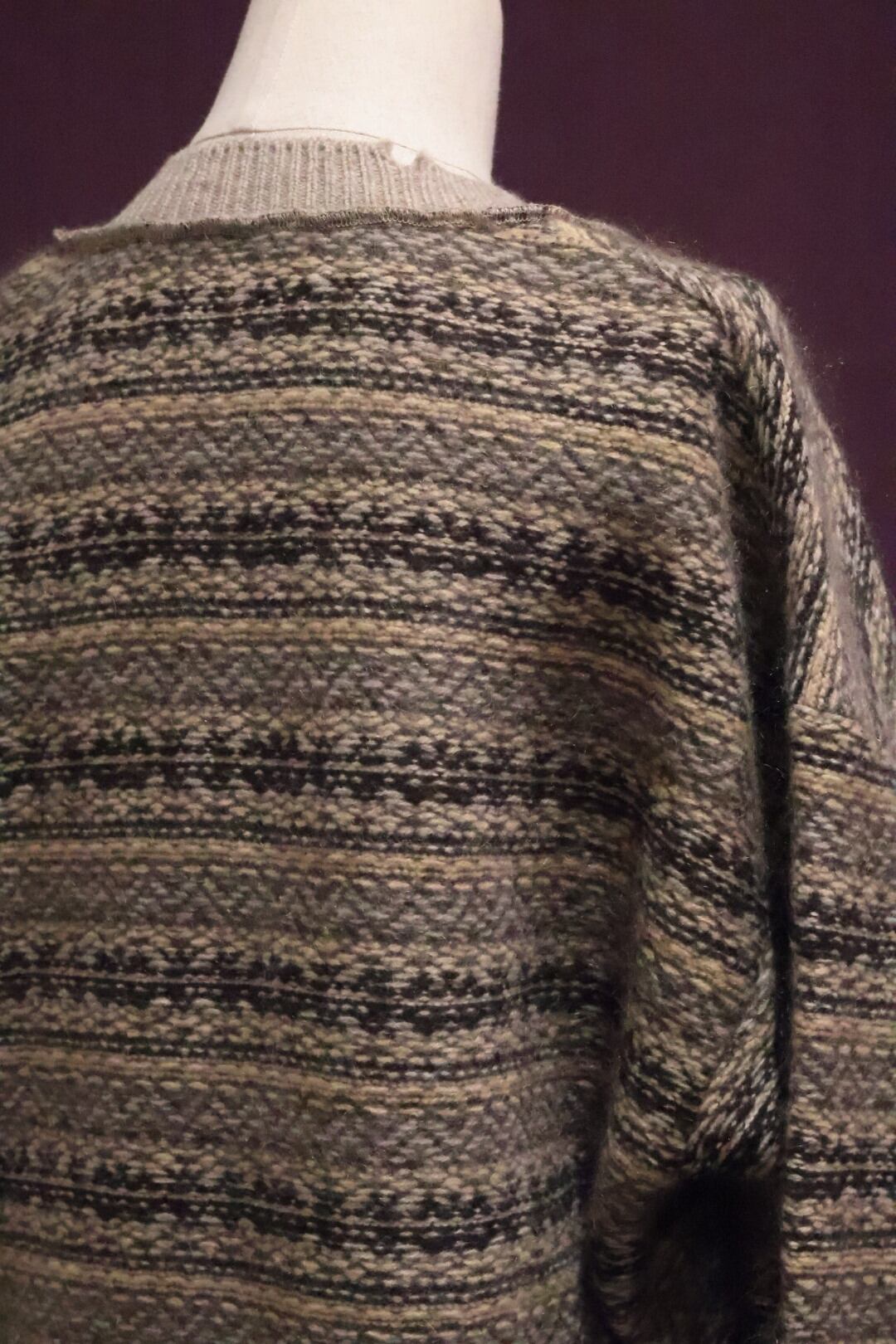 ・織柄を裏返すことで柄が抽象的となり、本来はカジュアルなフェアアイル柄がモードな雰囲気に仕上がっています。(リバーシブルでも着用可)