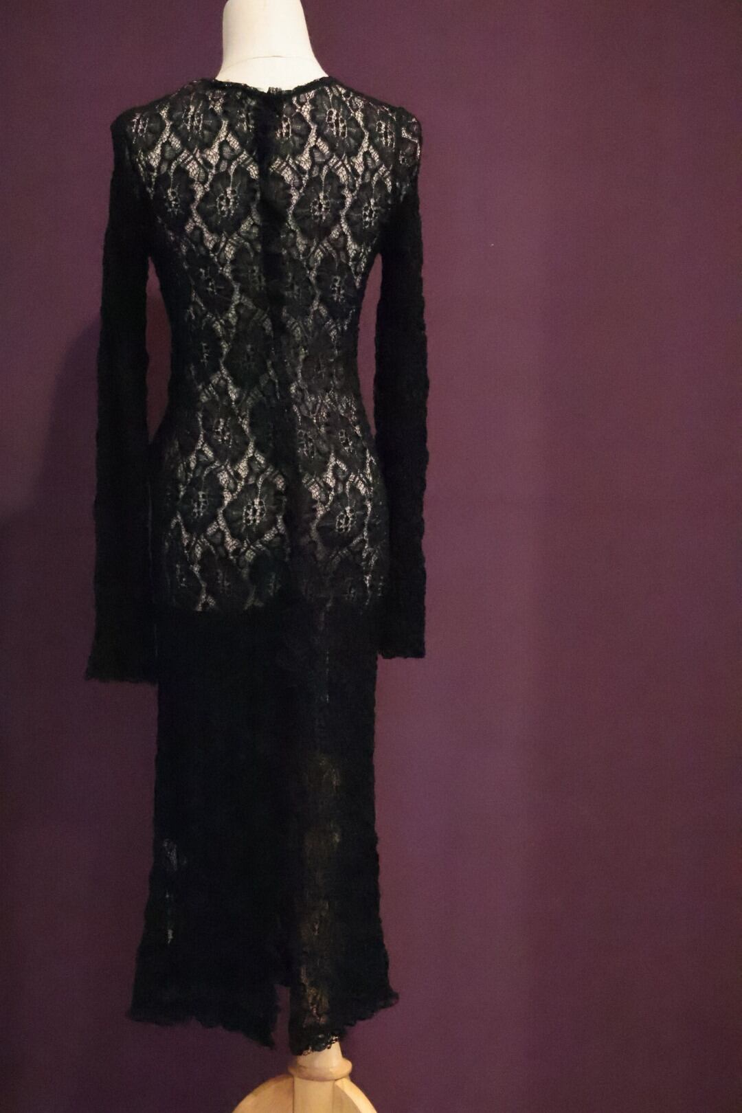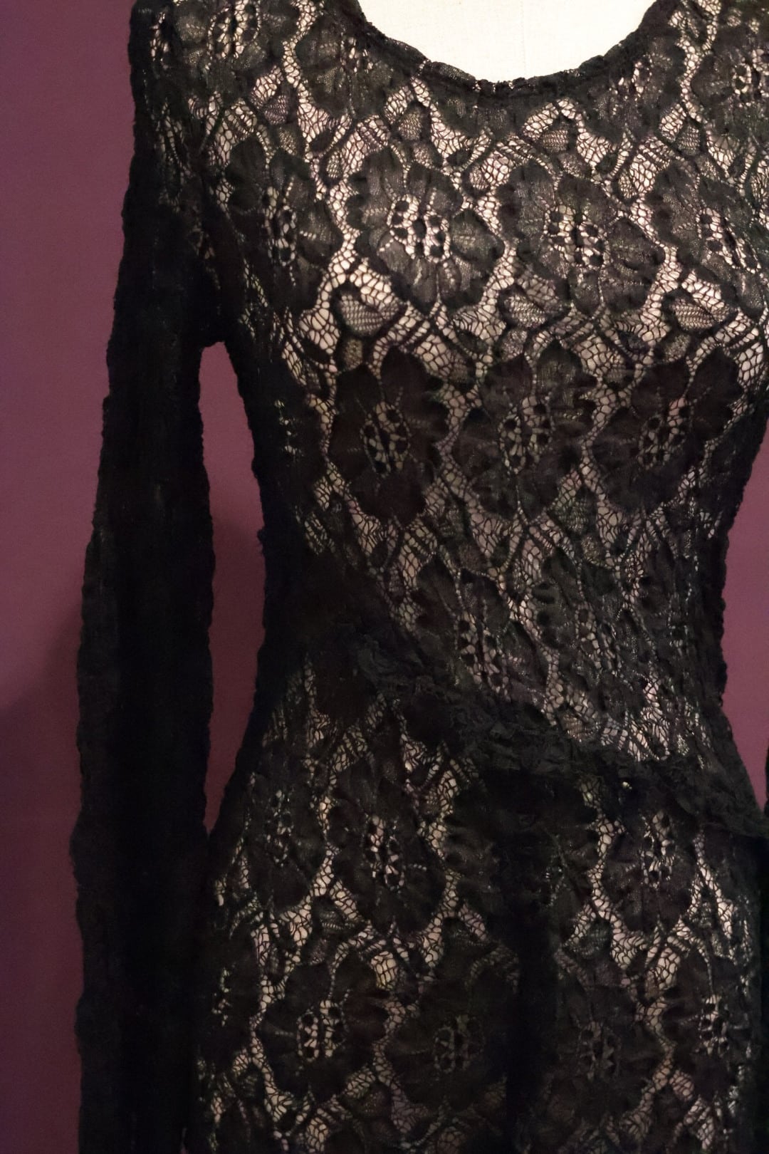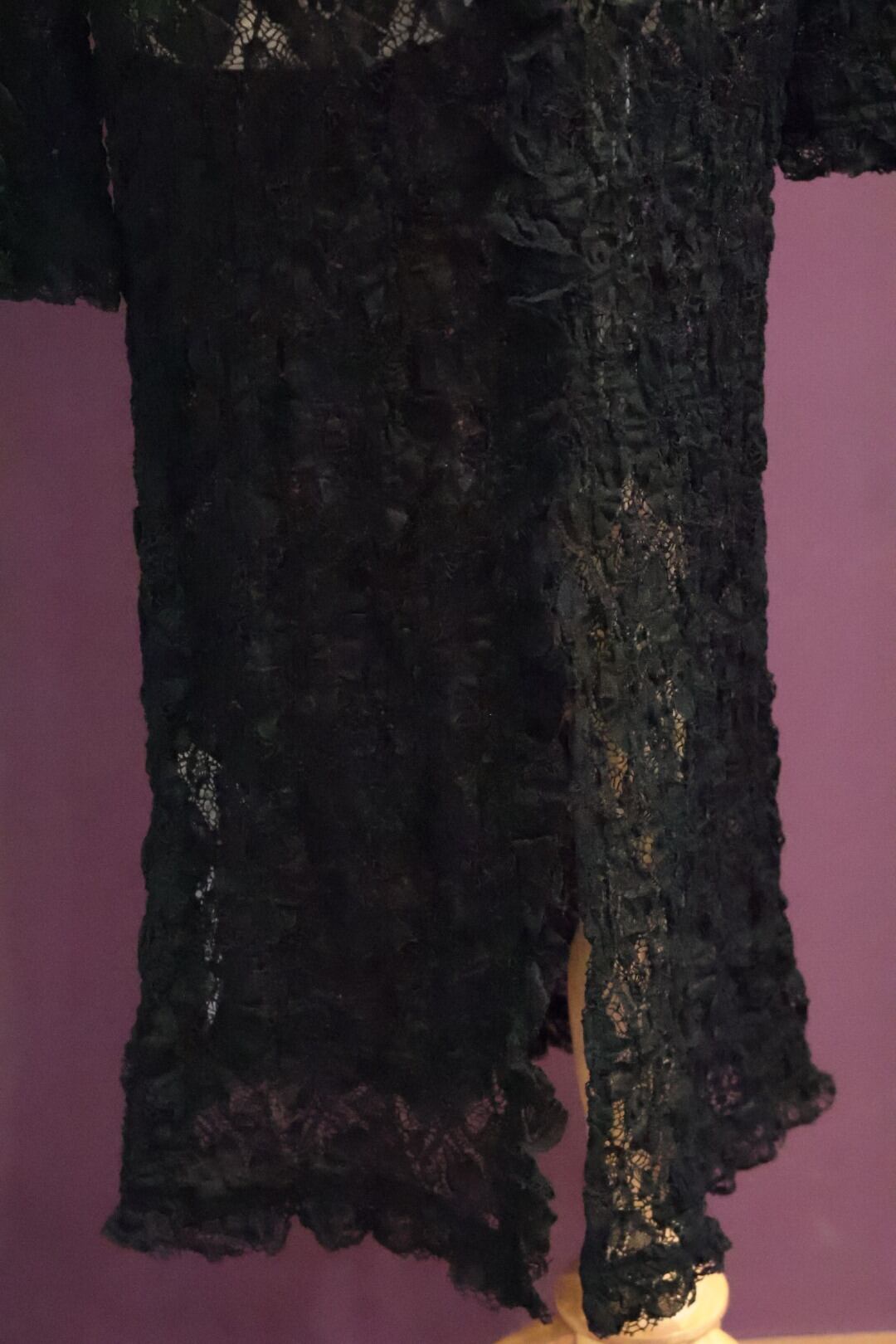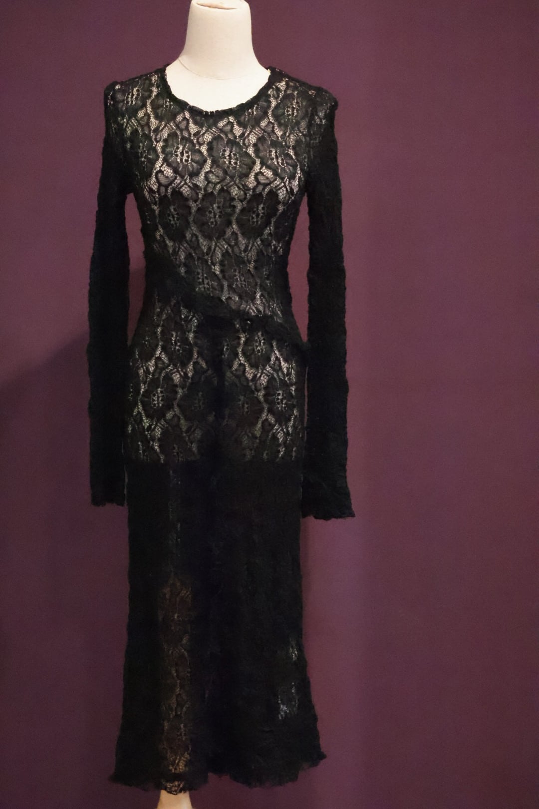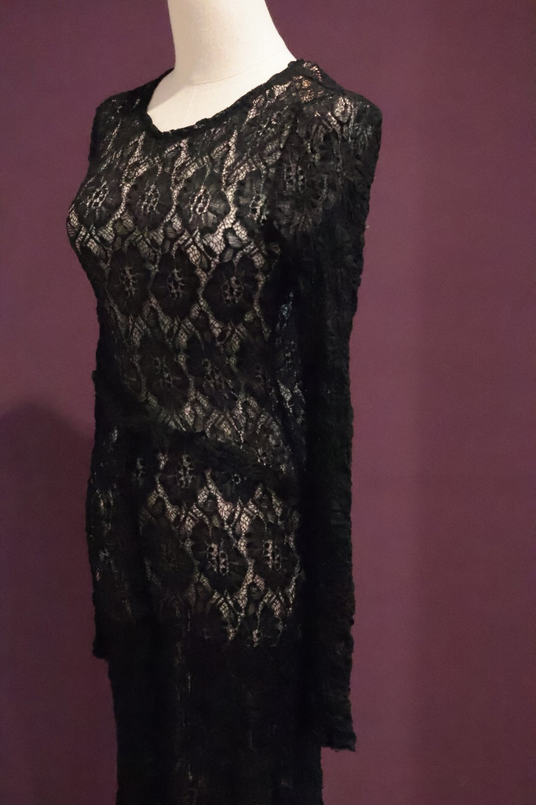 繊細なストレッチレースをたっぷりと使った、軽やかで女性らしいフリルドレス。