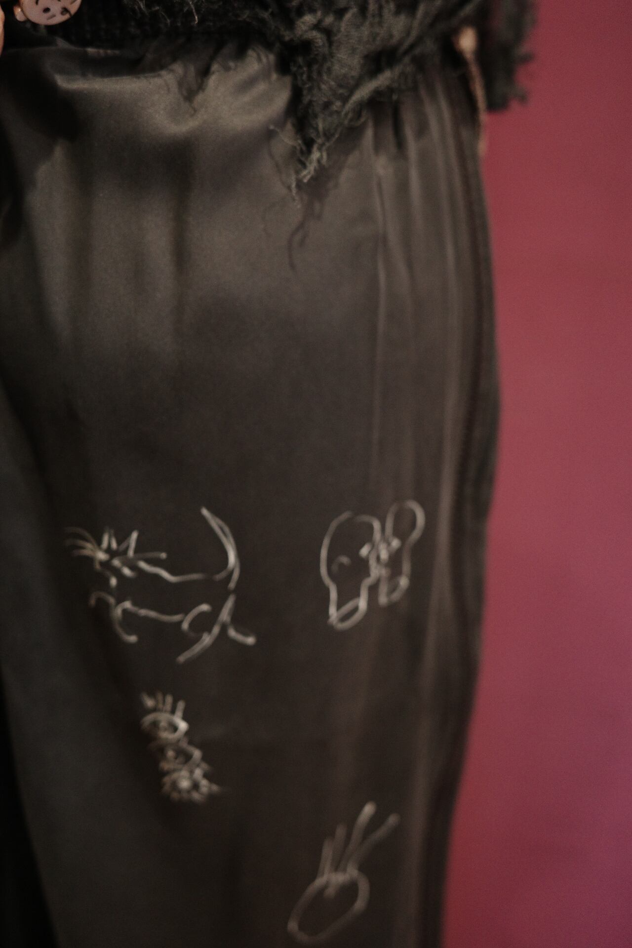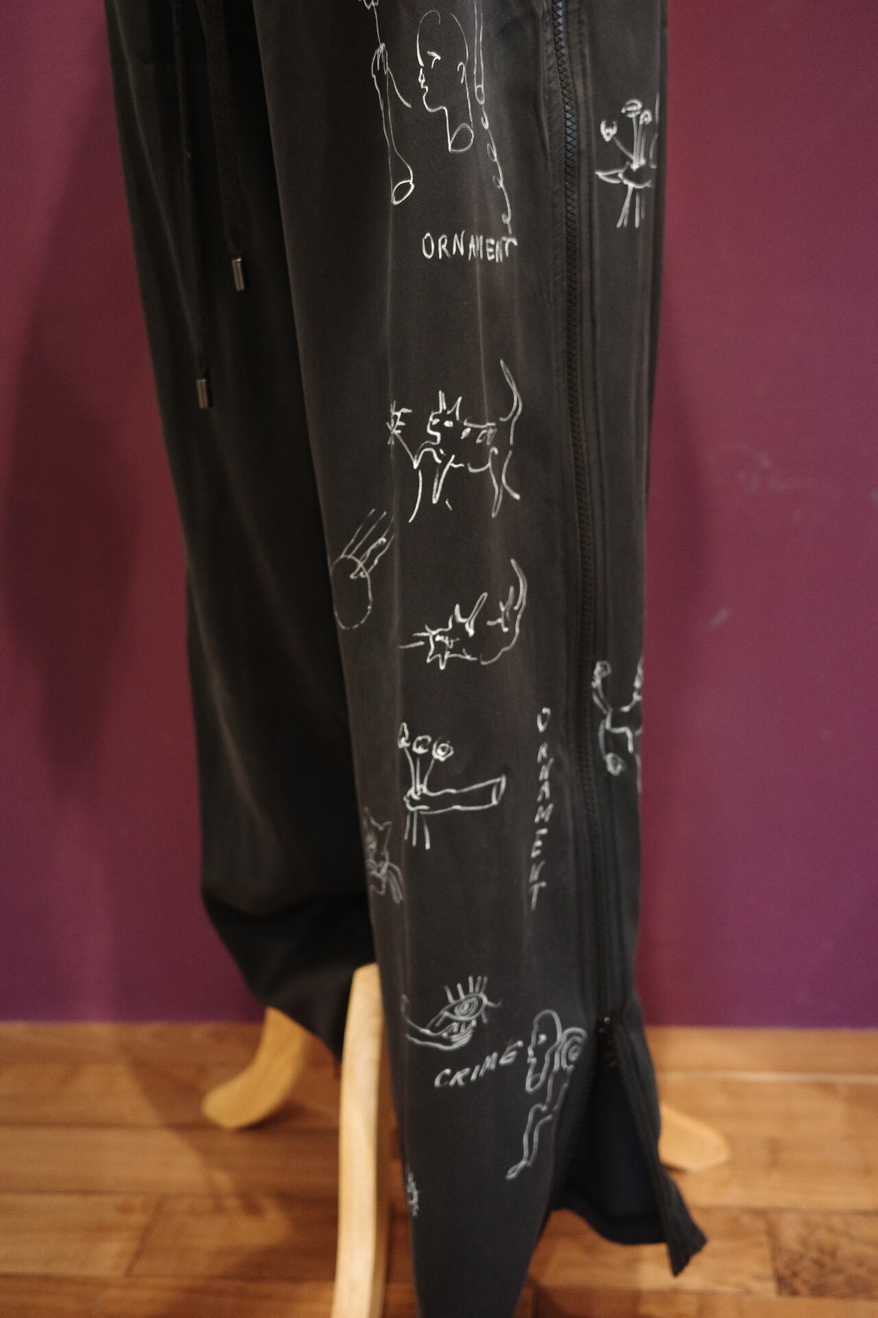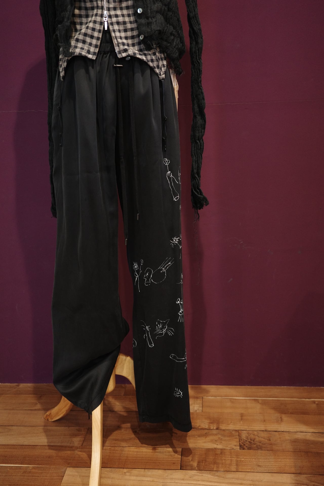 シルク素材でウエストはゴムでリラックス感がありながら、サイドファスナーによってシルエットを崩さず、美しく整う設計になっています。