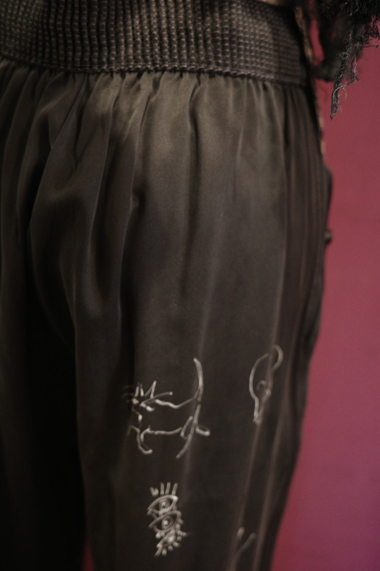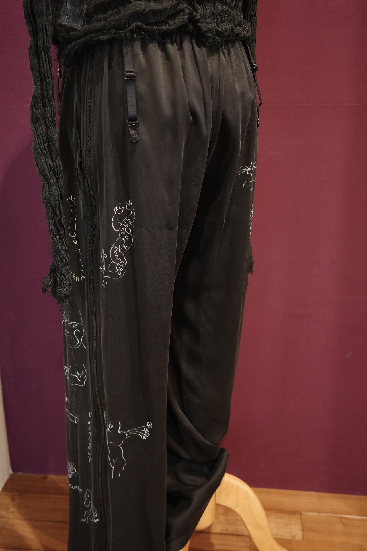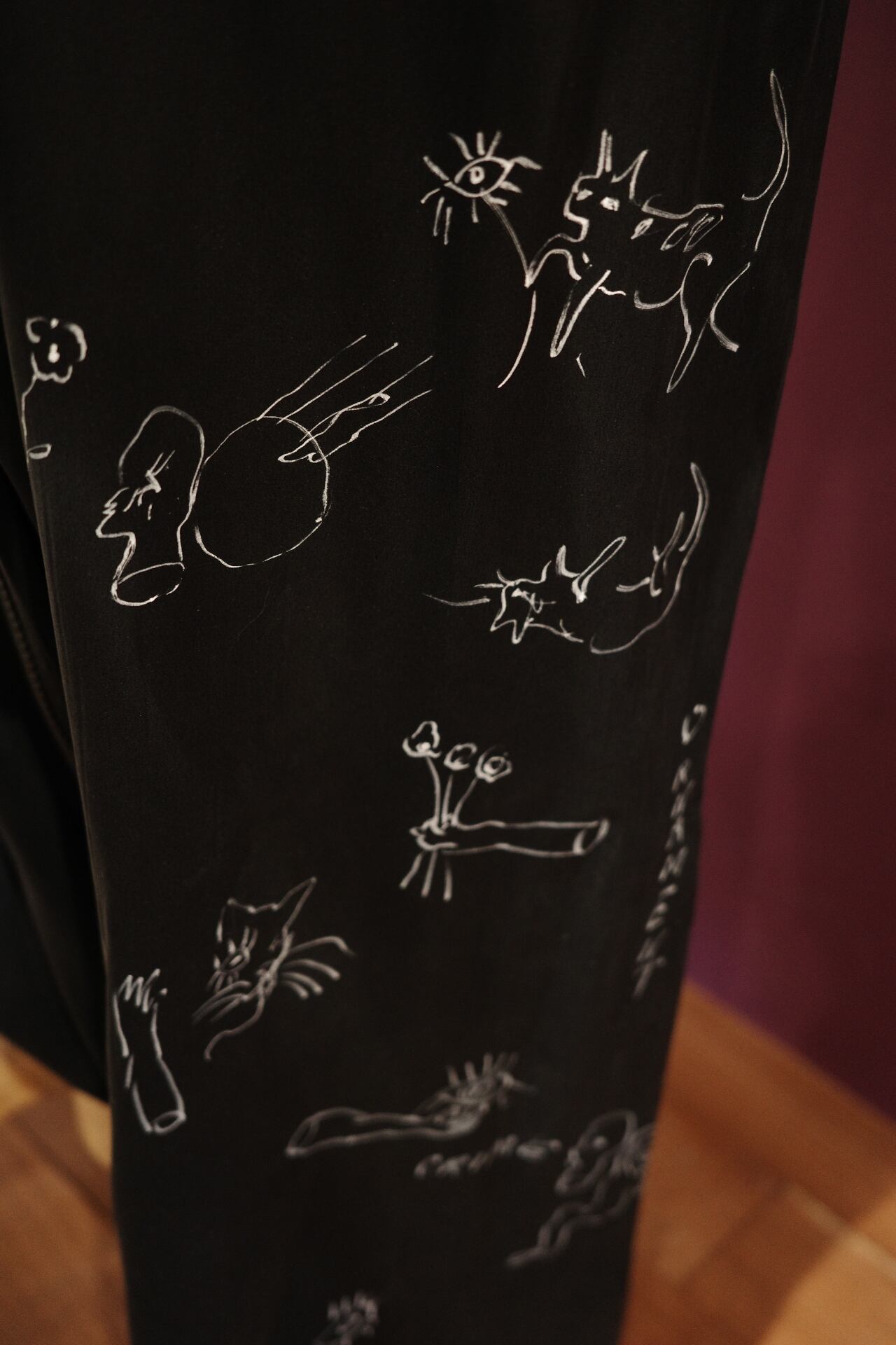 シルク素材でウエストはゴムでリラックス感がありながら、サイドファスナーによってシルエットを崩さず、美しく整う設計になっています。