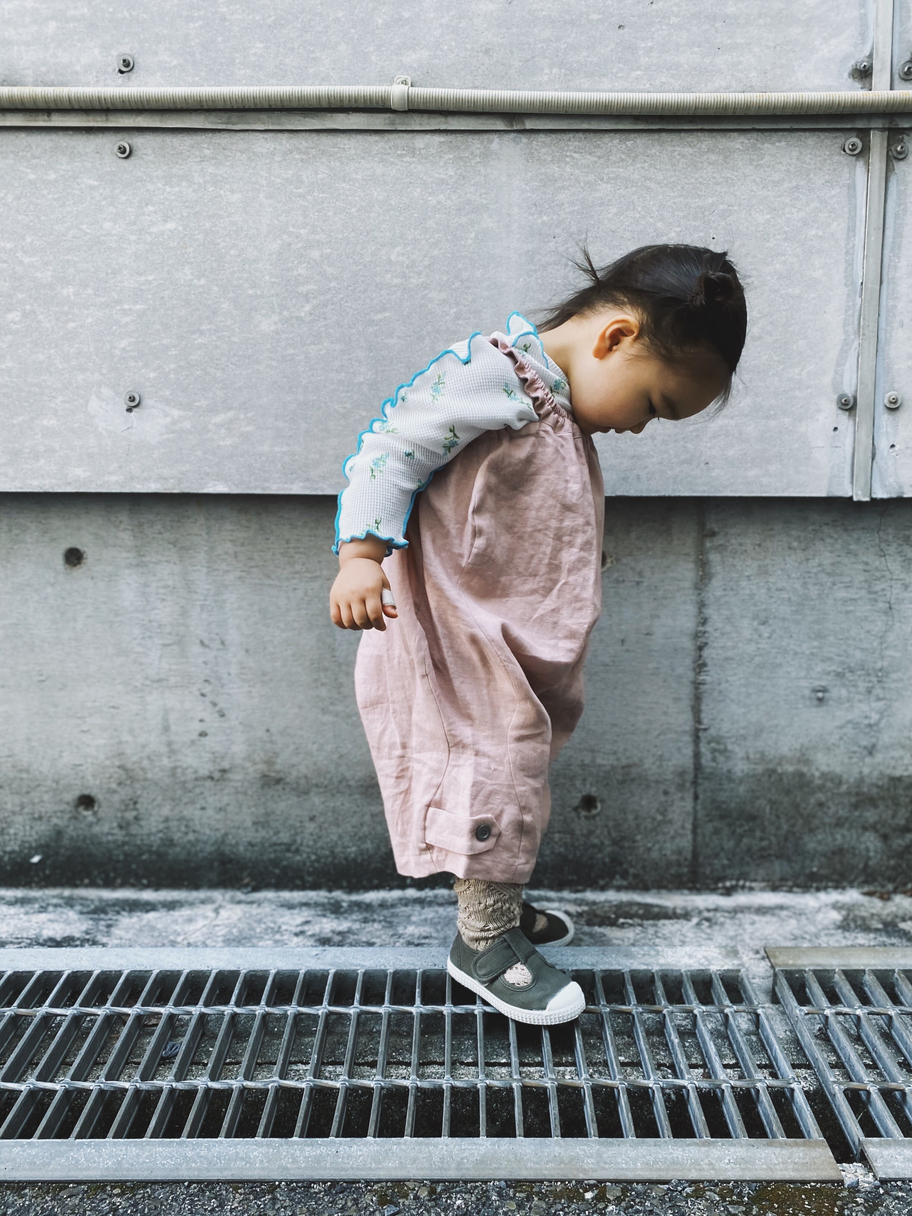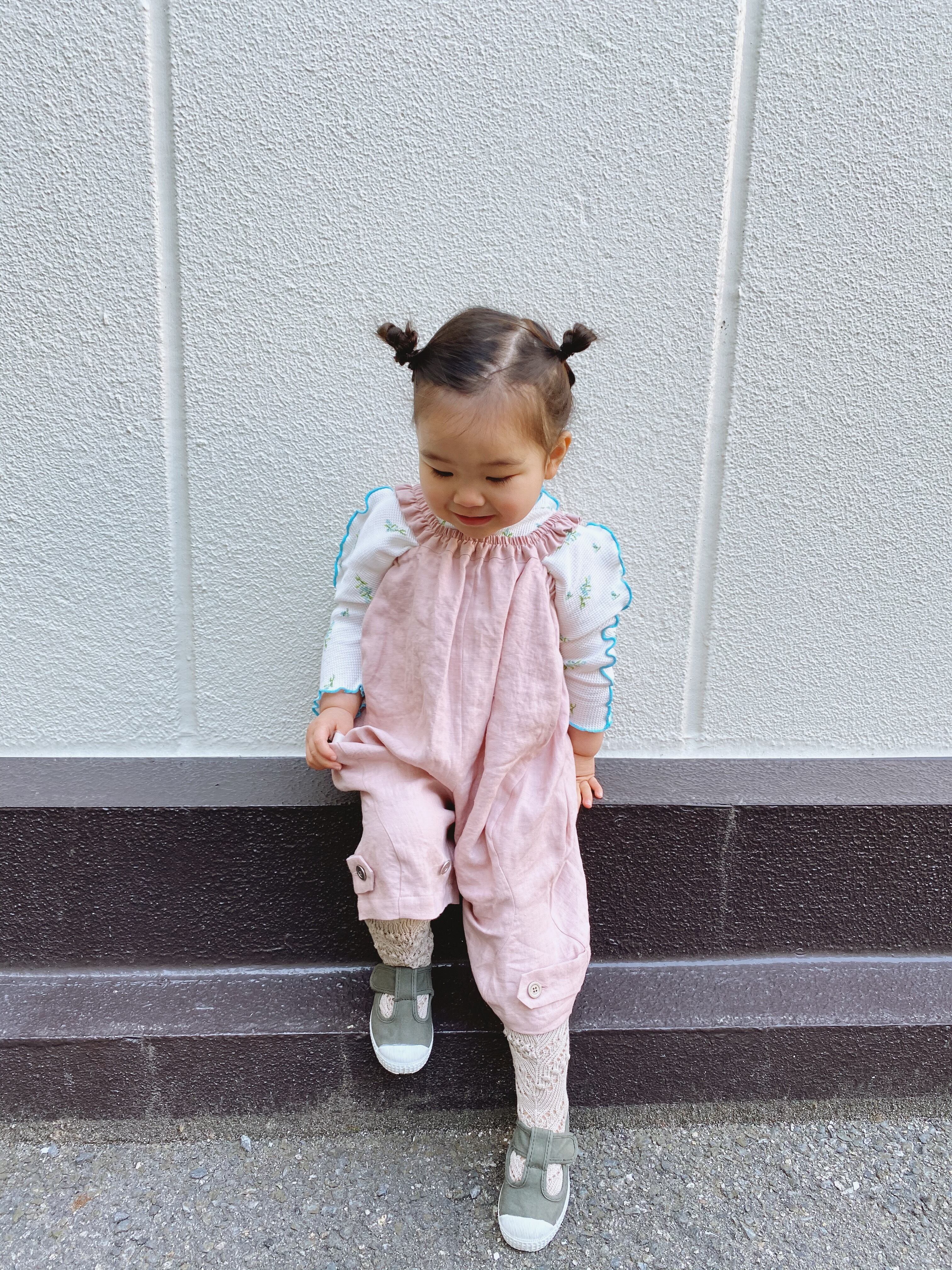 身長80〜110㎝ぐらいのお子様までそれぞれの着方を楽しめるサロペットパンツです。