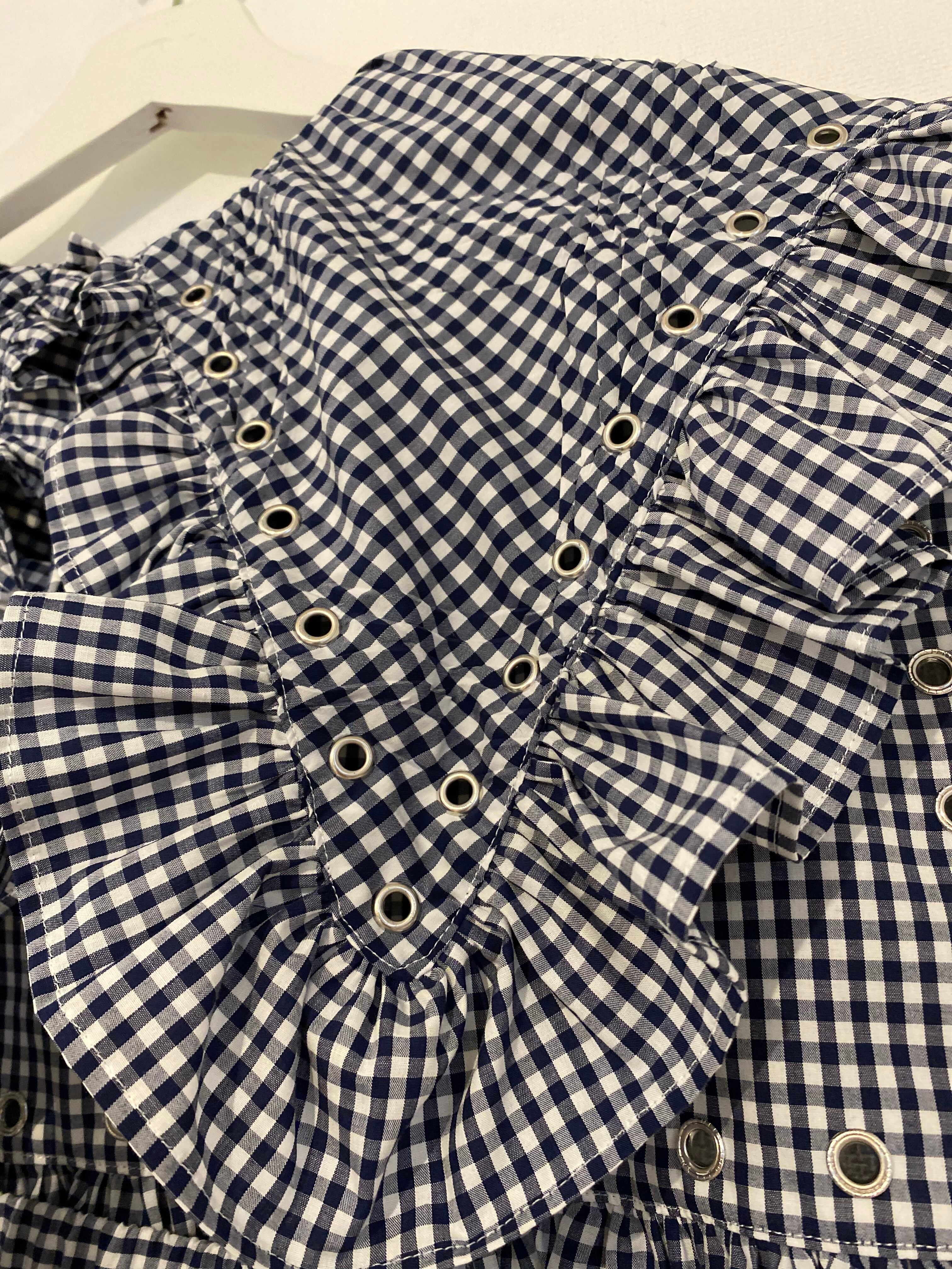 ストッキングのような加工がされていて襟の裾にはハトメで囲ってあります。