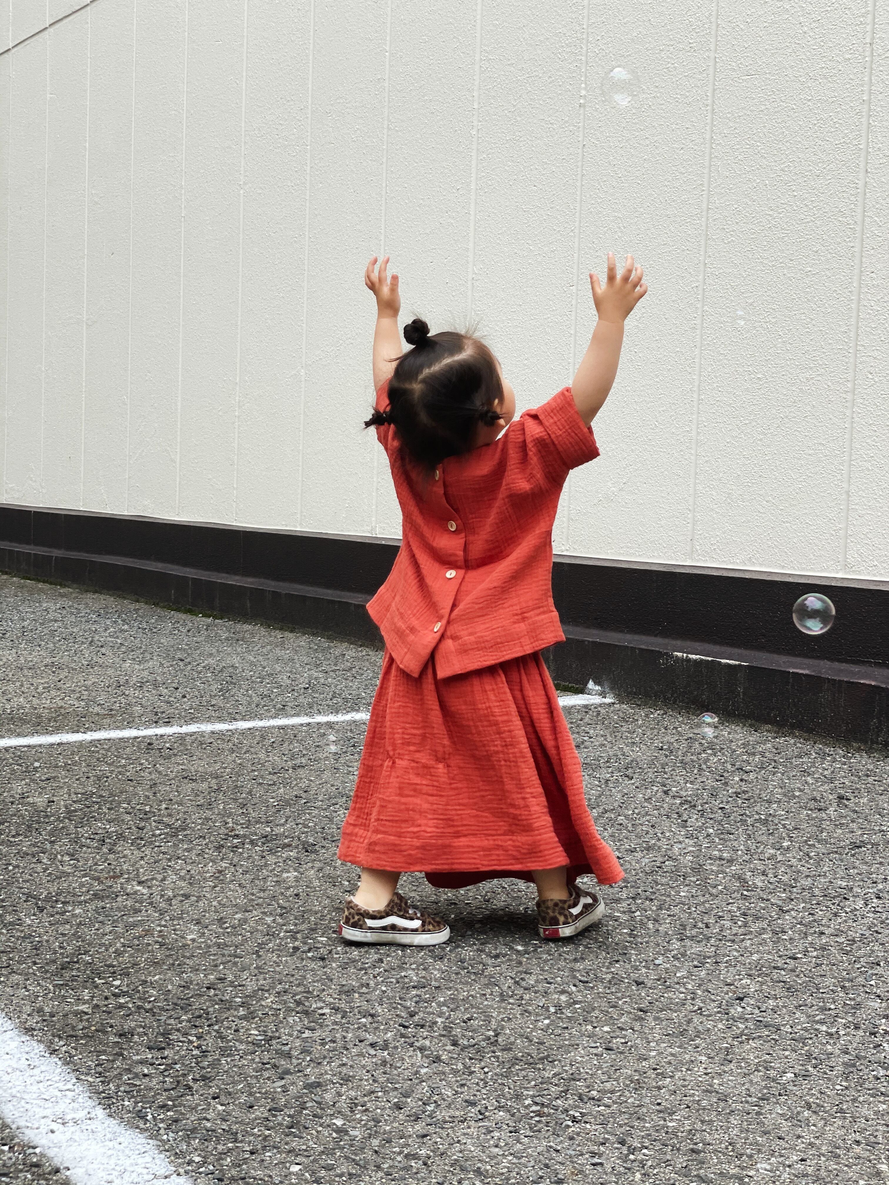 木のボタンがかわいくコーディネートしやすいデザインです。