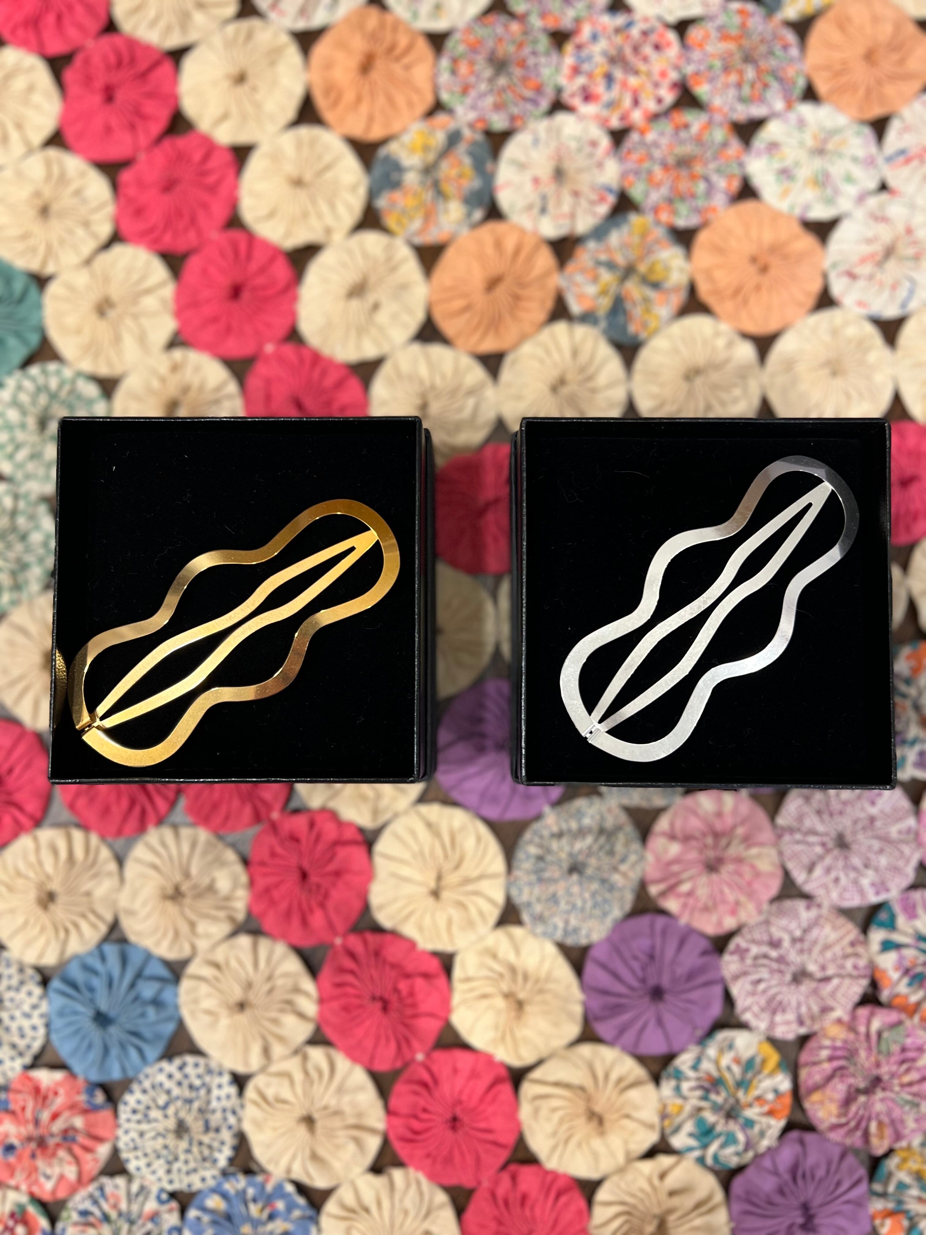 独自の折り紙や衣類パターン技術を金属に適用し、折り曲げ技術で鋼をバネ式に進化させ作られたシームレスなデザインが特徴です。