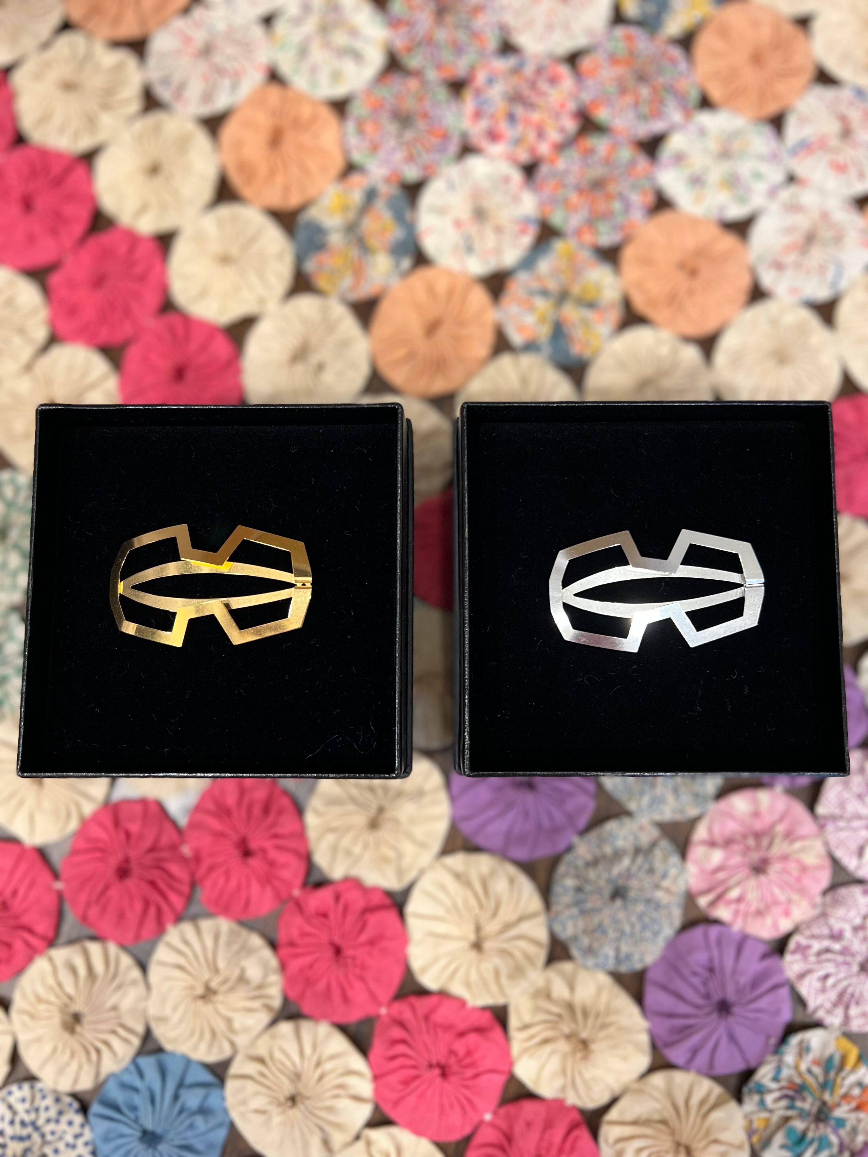 独自の折り紙や衣類パターン技術を金属に適用し、折り曲げ技術で鋼をバネ式に進化させ作られたシームレスなデザインが特徴です。