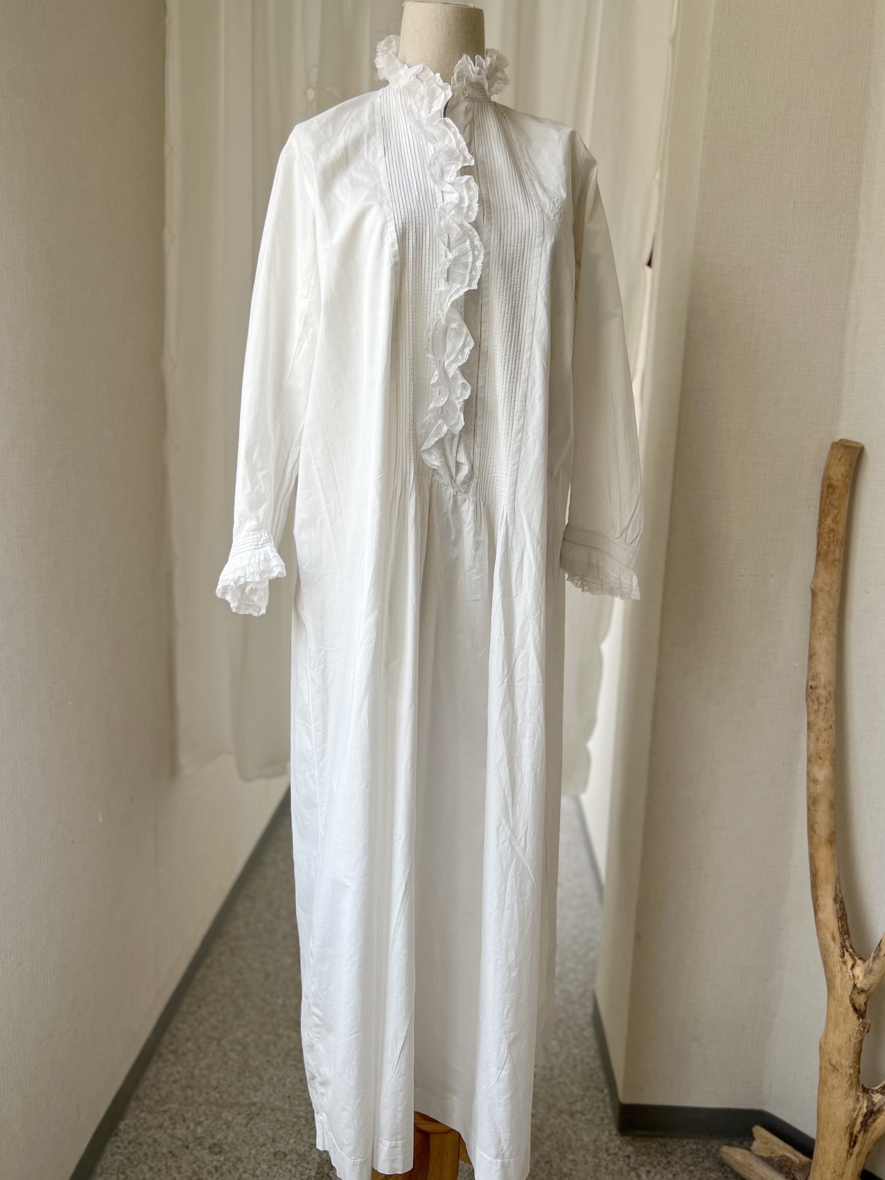 1900年前後の豪華なレースが使用され細かいピンタックがたっぷりの贅沢なワンピースです。
