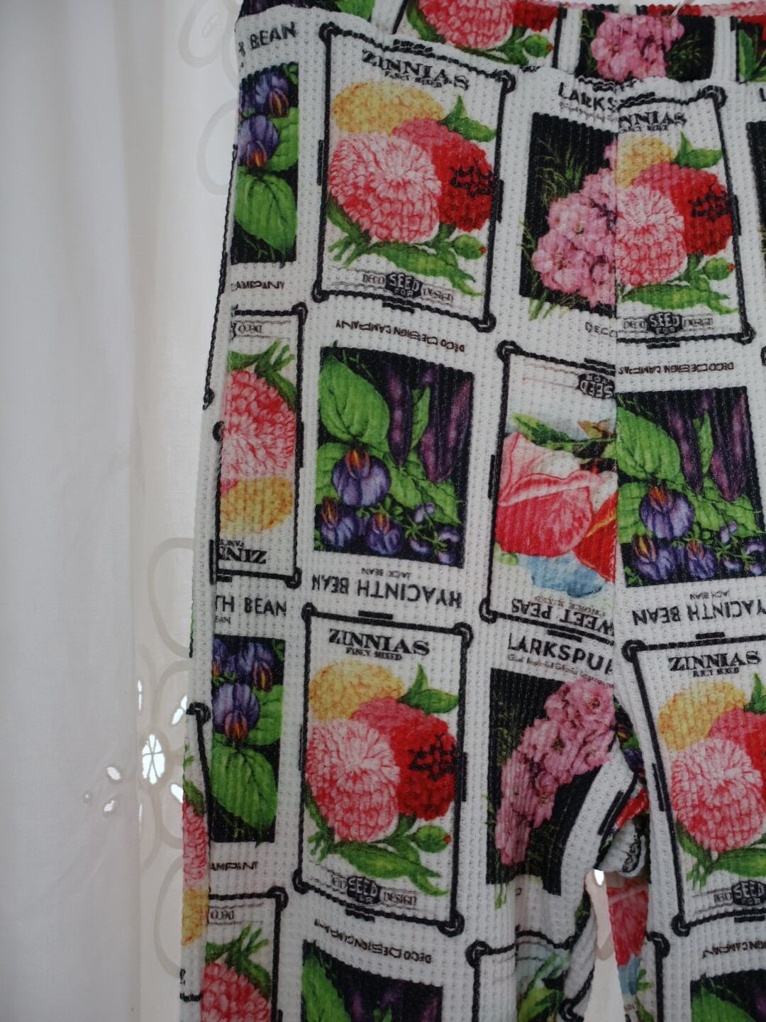 プリントには、ヴィンテージのお花の種プリントしたステキなパンツになっています。