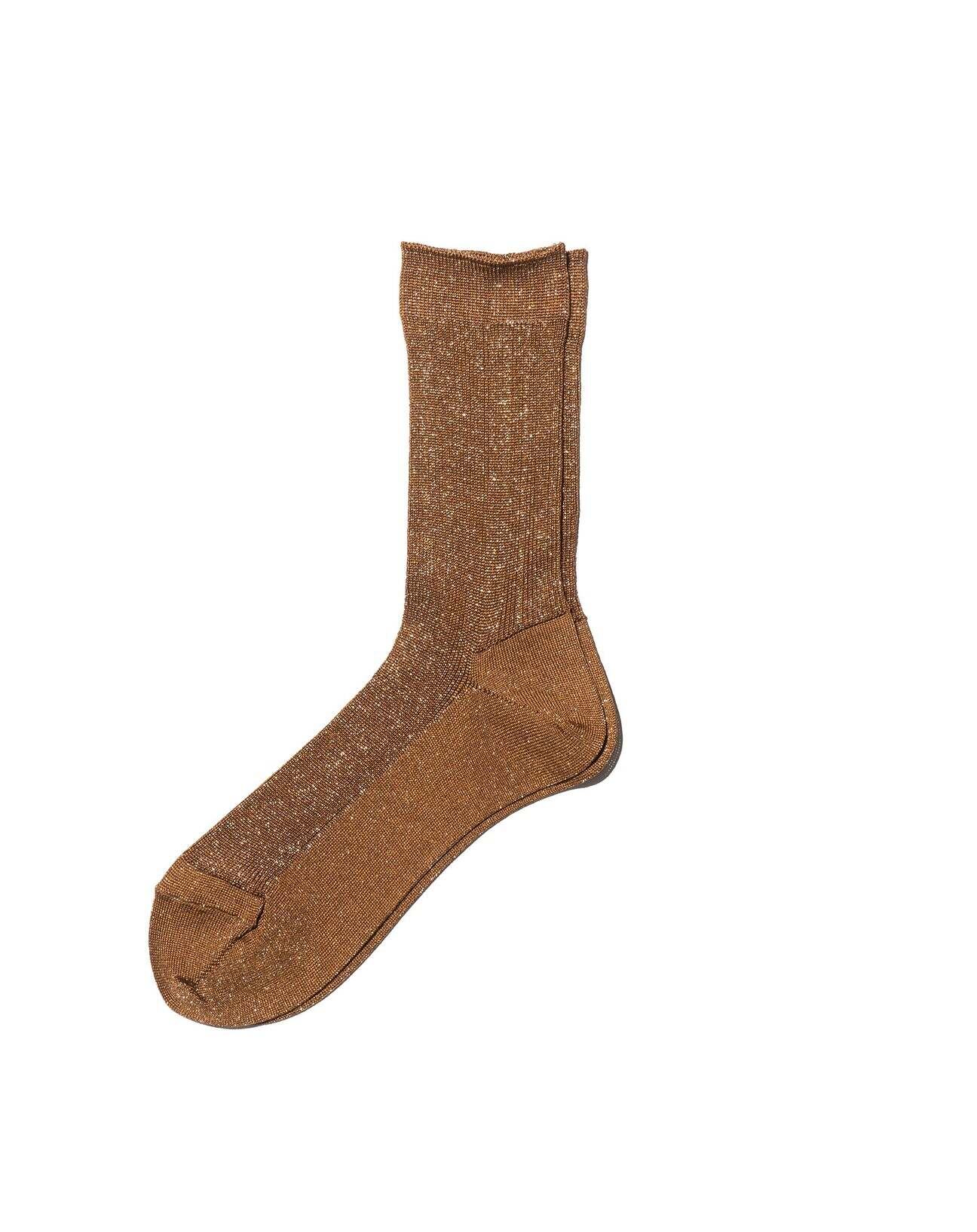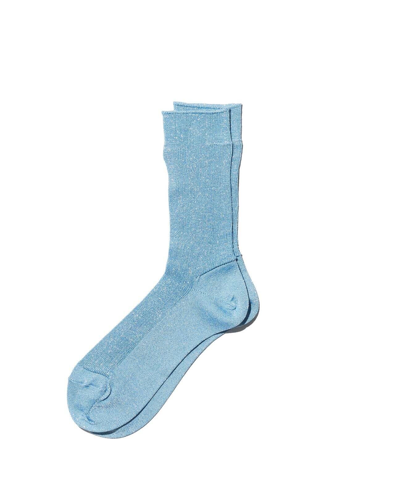 リブのグリッターソックスは肌触りの良いラメ糸を使用し、柔らかくしなやかな履き心地。